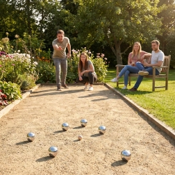 Mėgaukitės bendruomeniniu žaidimu tiek mažiems, tiek dideliems. Pentanqas paprastas ir smagus – tikslas yra mesti kamuolius kuo arčiau medinio košono. Su kompaktišku lagaminėliu pentanqo rinkinį patogiai pasiimsite į sodą, paplūdimį, pikniką ar savaitgalį už miesto.