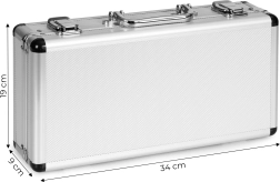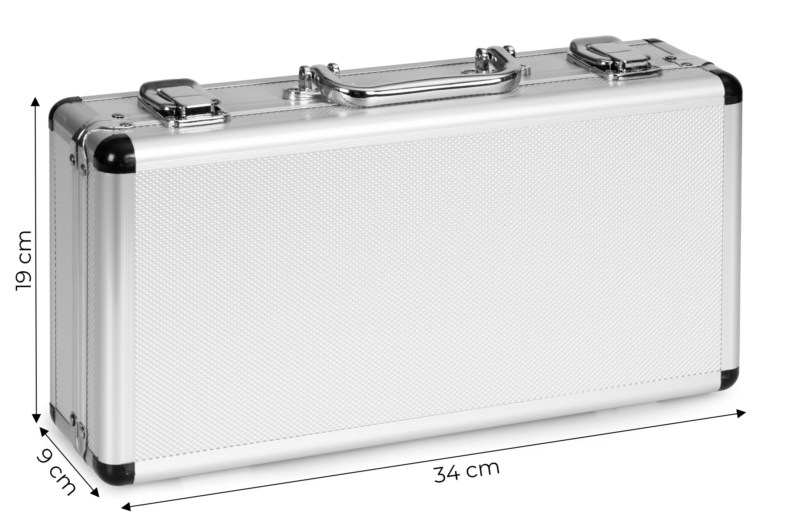 Elegantiškas lagaminėlis su putplasčio įdėklu saugiai talpina visus kamuolius ir priedus bei palengvina nešiojimąsi į bet kurį žaidimo aikštyną.
