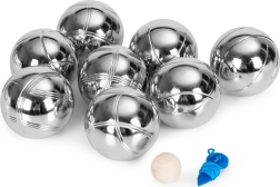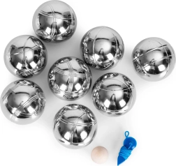 Chromuoto plieno kamuoliai derina patvarumą ir elegantišką išvaizdą. Trys skirtingi raštuotų rievelių tipai leidžia greitai atskirti žaidėjus žaidimo metu. Pridėta matavimo virvelė padeda tiksliai nustatyti, kas arčiau – sąžiningas žaidimas be ginčų.