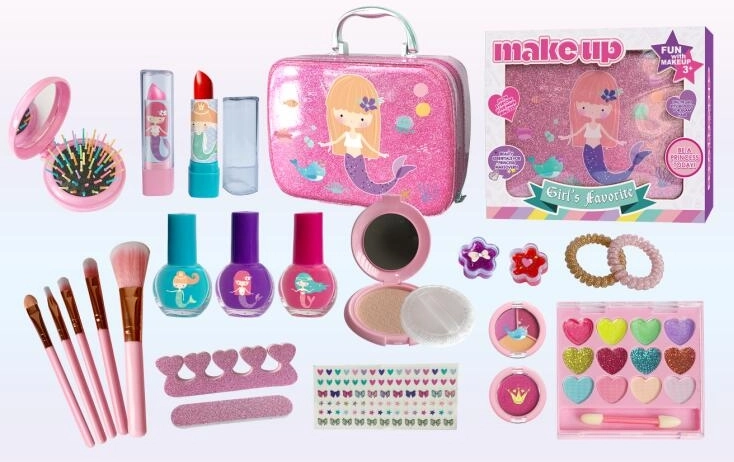 Kompaktiškas lagaminėlis su jūros undinėlės motyvu yra lengvas, patvarus ir lengvai nešiojamas. Dėl apgalvoto vidaus išdėstymo kiekvienas makiažo produktas turi savo vietą, tad niekas nepasimes. Puikiai tinka vaizduotei lavinti, smulkiajai motorikai ir kūrybiškai saviraiškai.