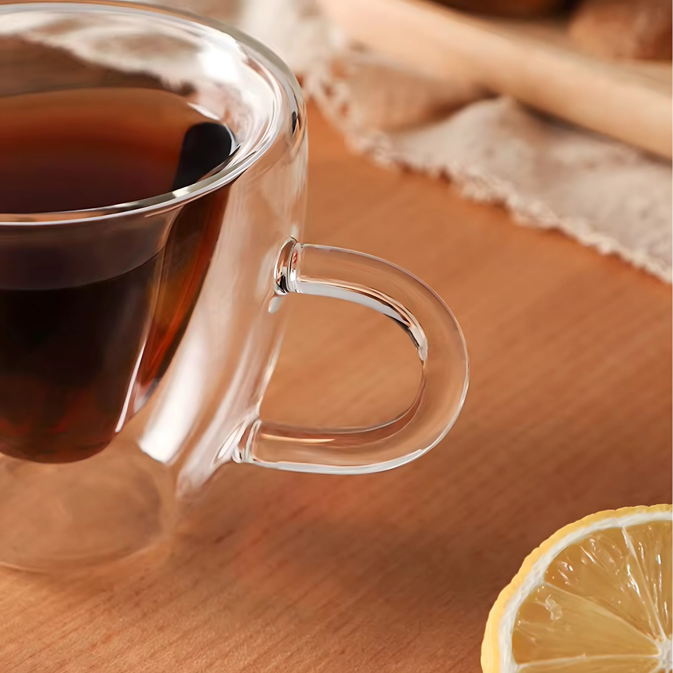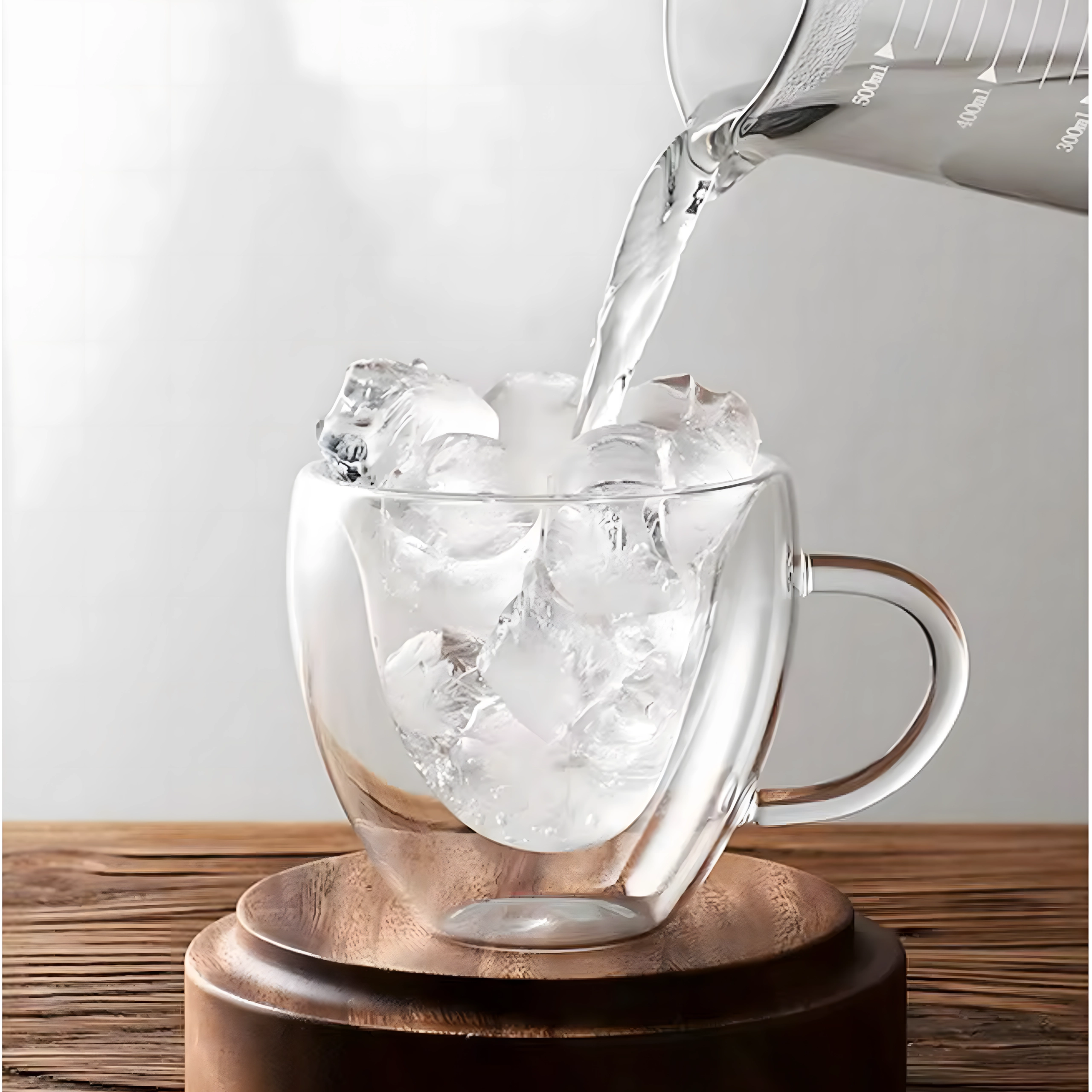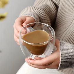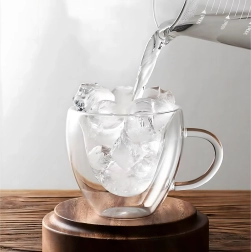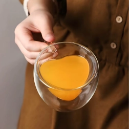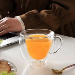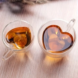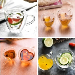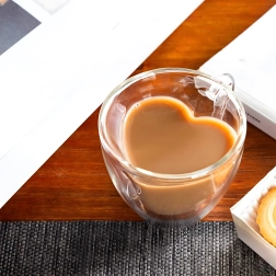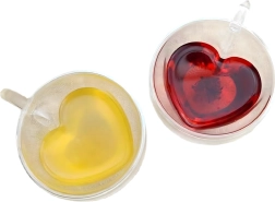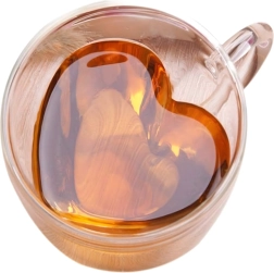 Elegantiškas širdelės formos stiklinis puodelis, 250 ml talpos, pagamintas iš patvaraus borosilikatinio stiklo su dvigubomis sienelėmis geresnei šiluminei izoliacijai. Puikiai tinka karštai kavai, aromatingai arbatai, taip pat šaltiems gėrimams ir desertams. Dėl izoliacinės konstrukcijos gėrimas ilgiau išlaiko temperatūrą, o išorinė sienelė išlieka maloniai vėsi saugiam laikymui.