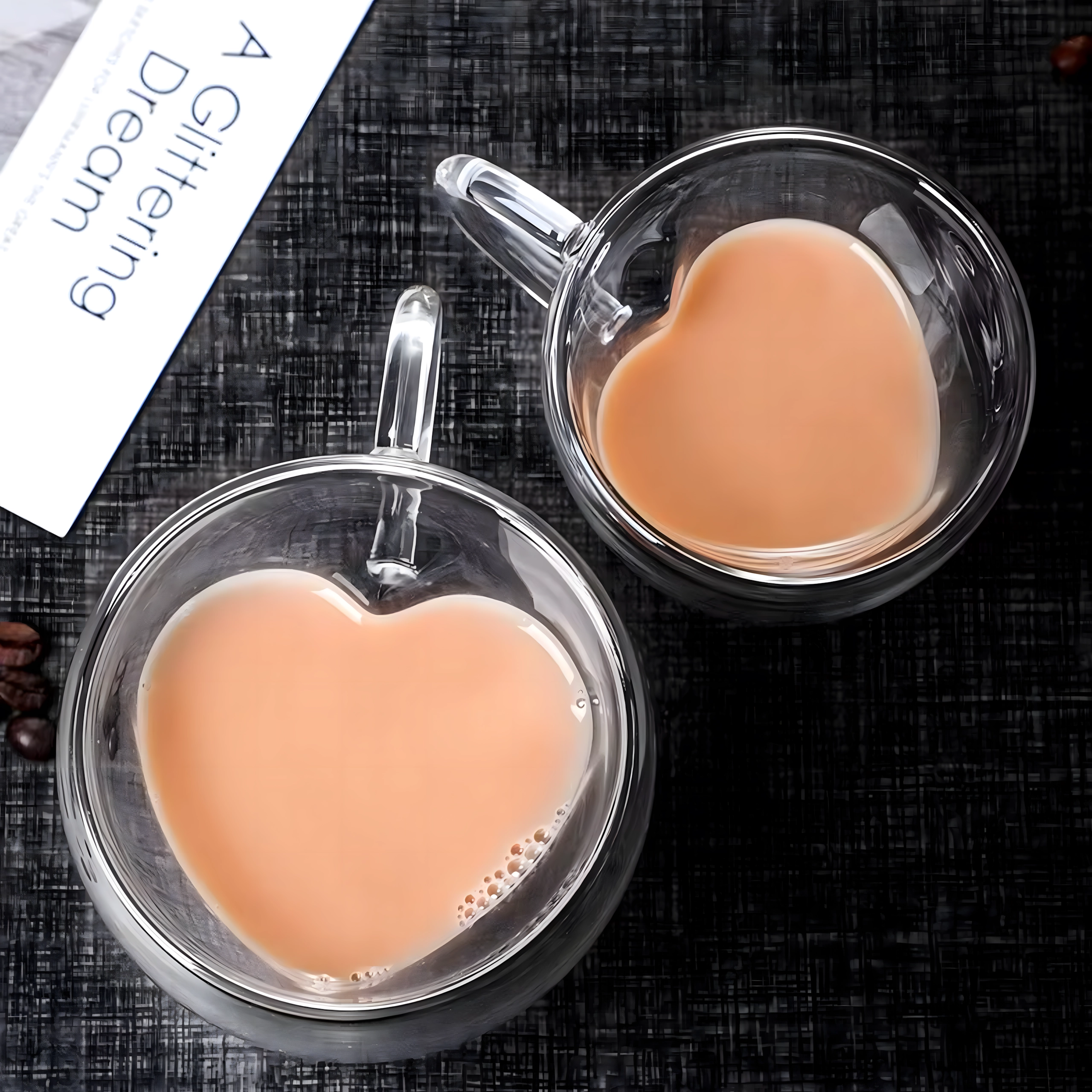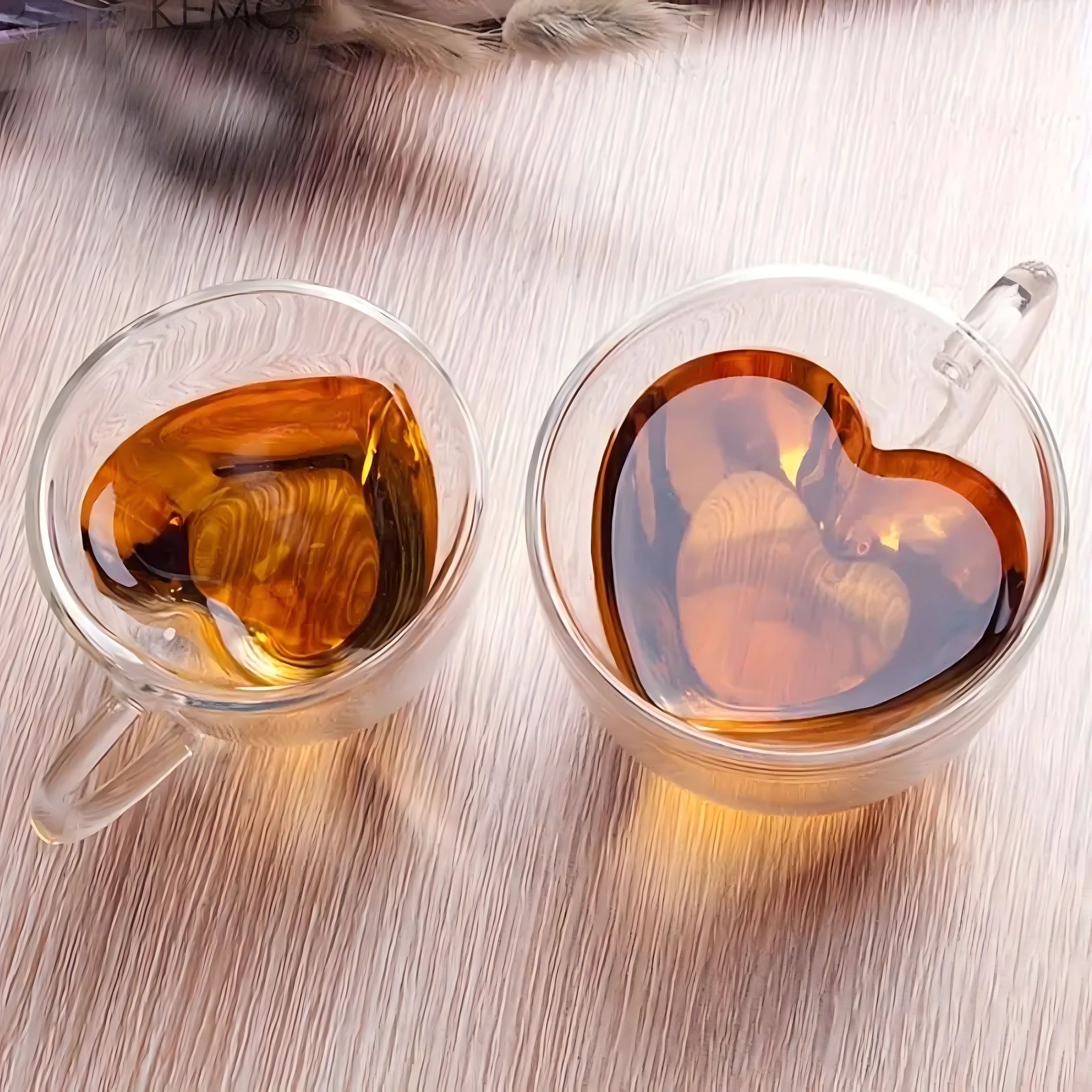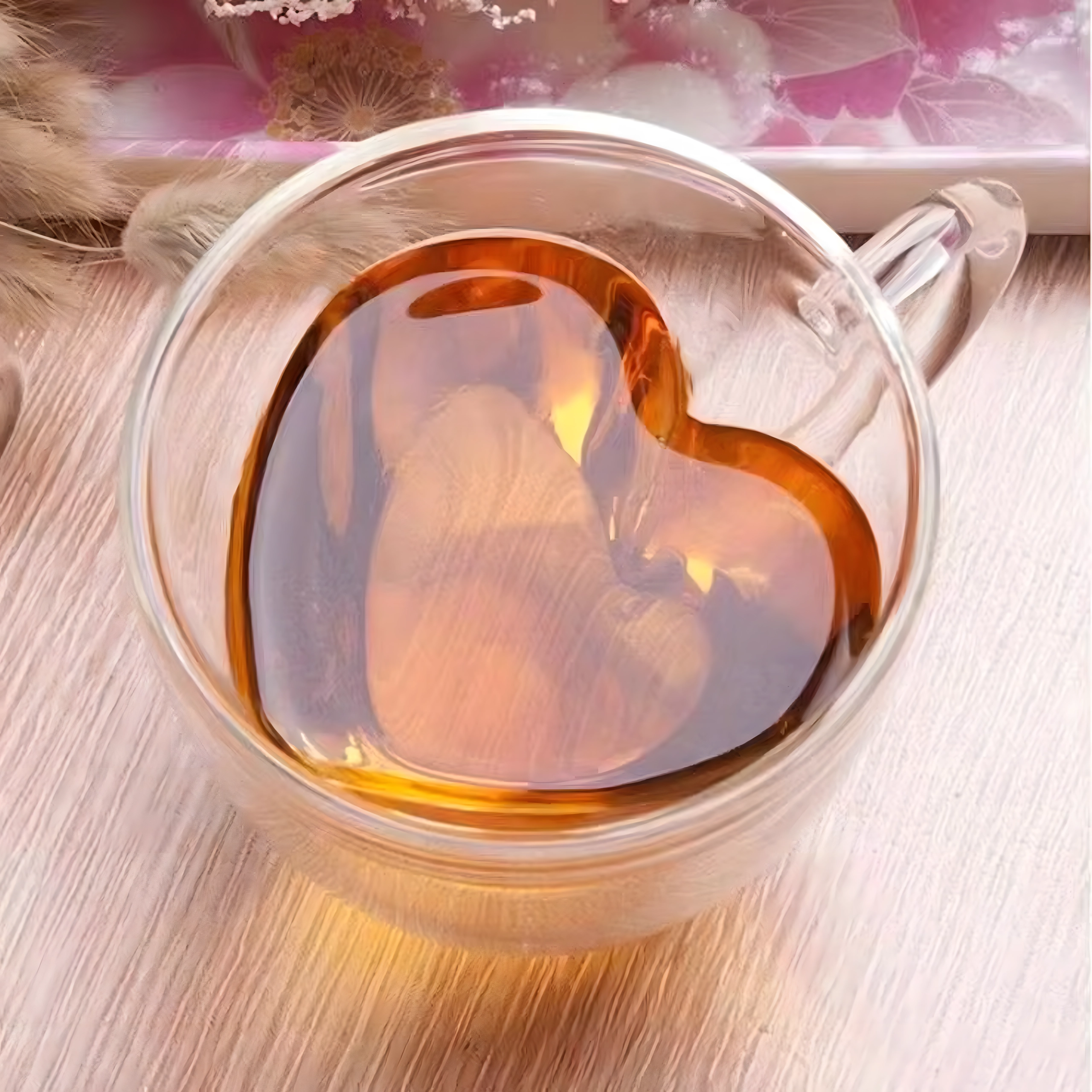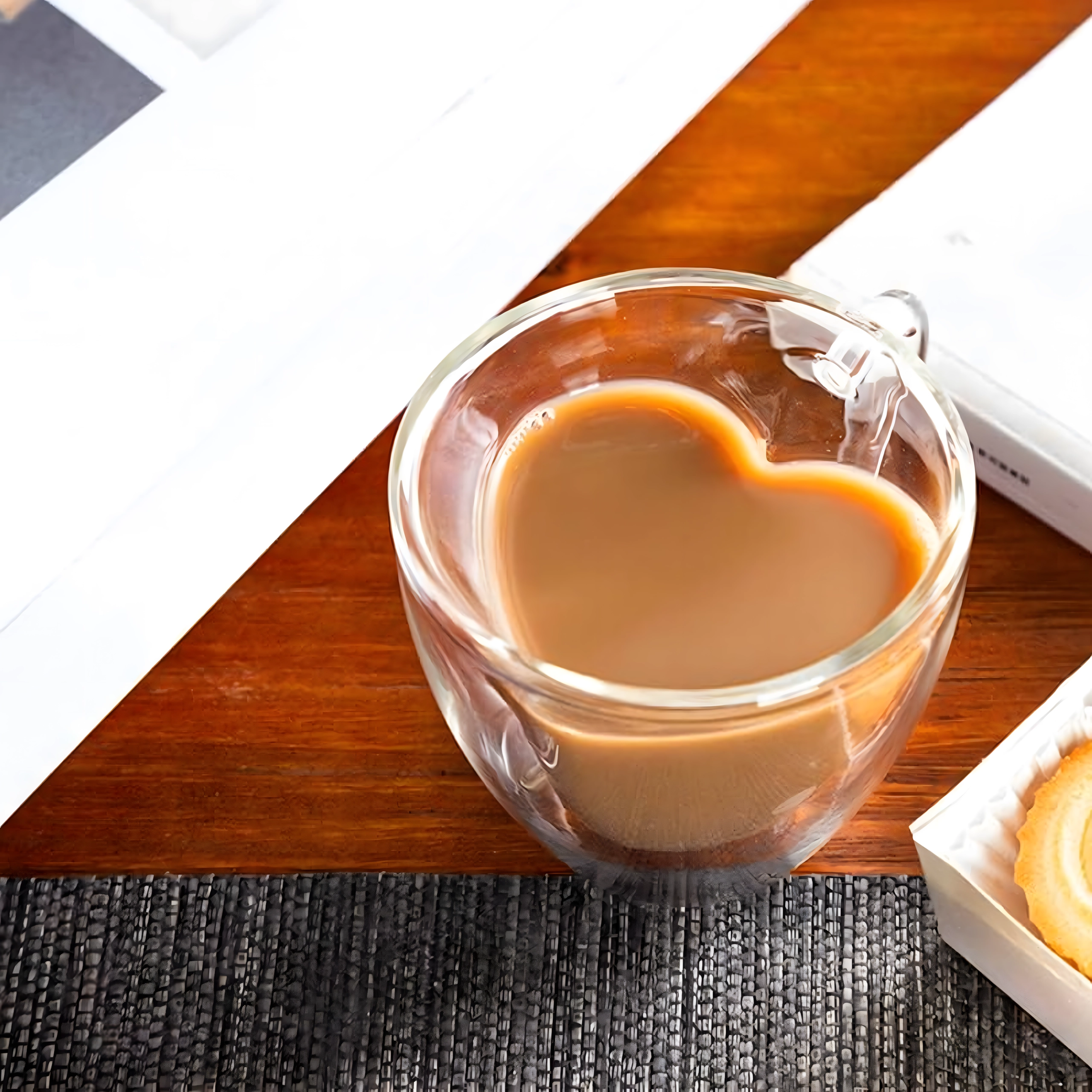 Įneškite į kasdienes akimirkas šiek tiek romantikos. Permatomas puodelis su vidine širdies formos kamera paryškina gėrimo spalvą ir suteikia stilingą pateikimą. Dviguba sienelė mažina rasojimą su šaltais gėrimais ir saugo rankas nuo karščio geriant kavą ar arbatą.
