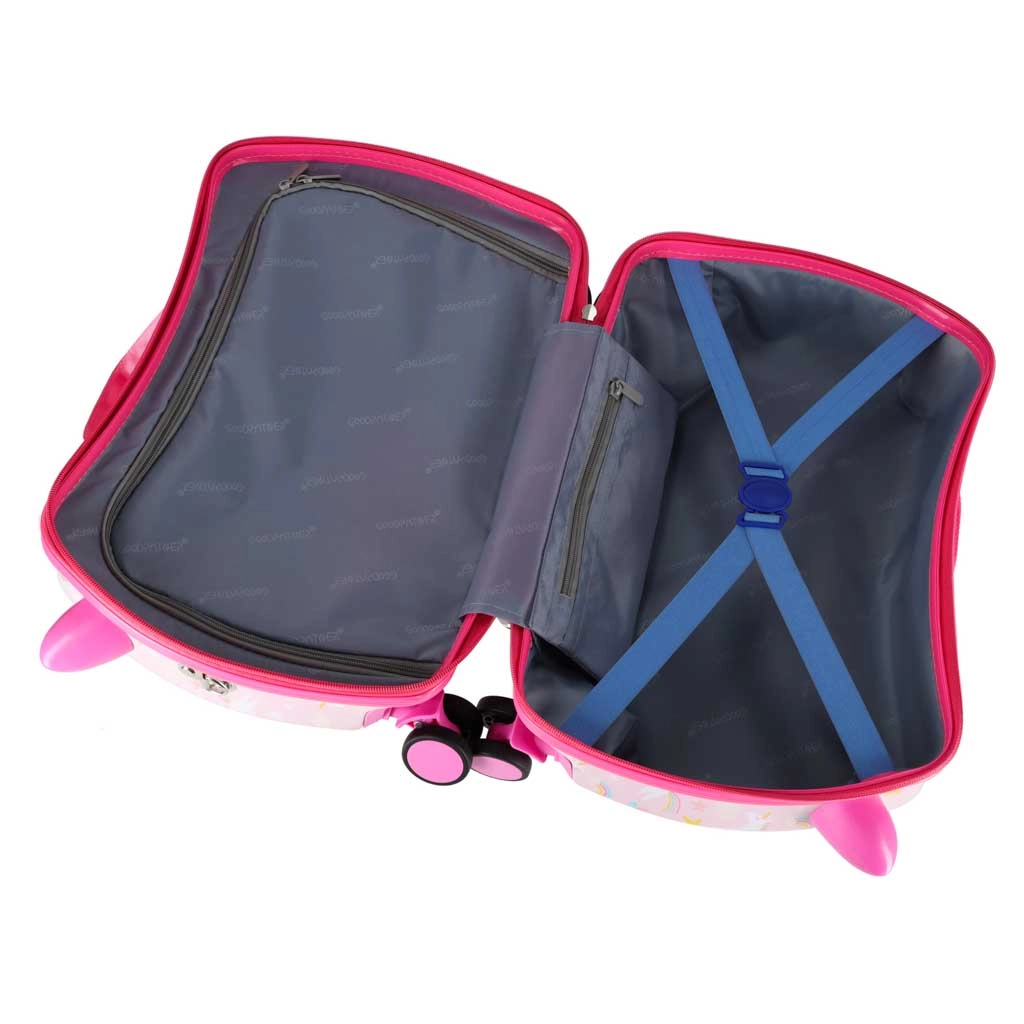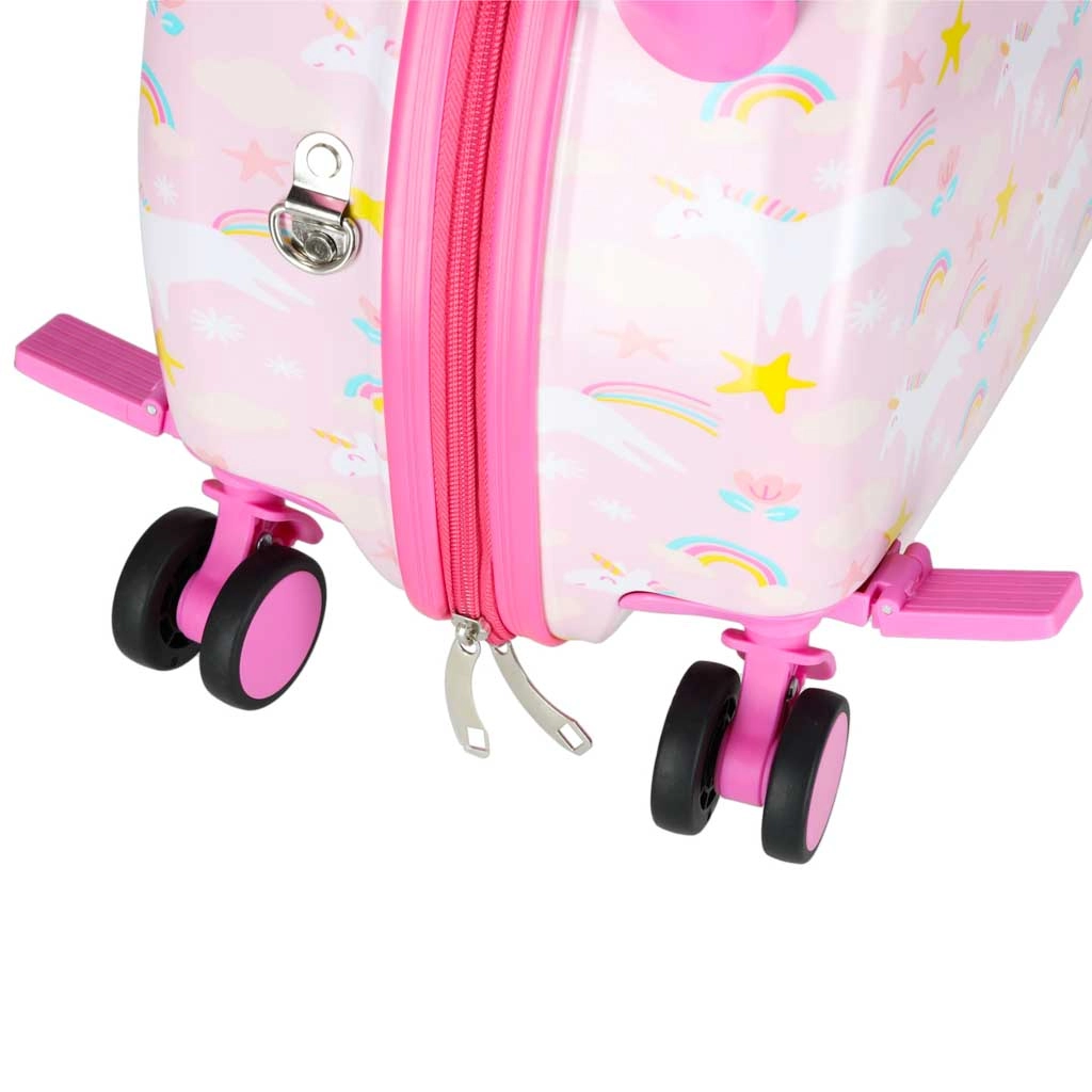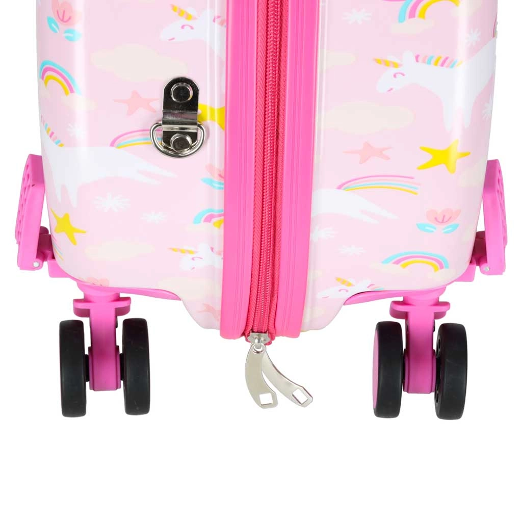 Leiskite vaikams keliauti linksmai ir be rūpesčių. Šis vaikiškas lagaminas su ratukais derina patogumą, funkcionalumą ir pasakišką vienaragio dizainą. Dėl kabinių matmenų puikiai tinka kaip rankinis bagažas, o kieta korpuso kiautė saugo turinį nuo smūgių.
