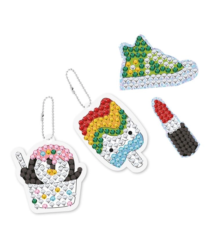 Paruoštus pakabukus lengvai prisegsite prie užtrauktuko, raktų ar kuprinės, o lipdukai papuoš sąsiuvinius, dienoraščius ir aksesuarus. Ideali dovana visiems, kurie mėgsta spindesį ir kūrybą.