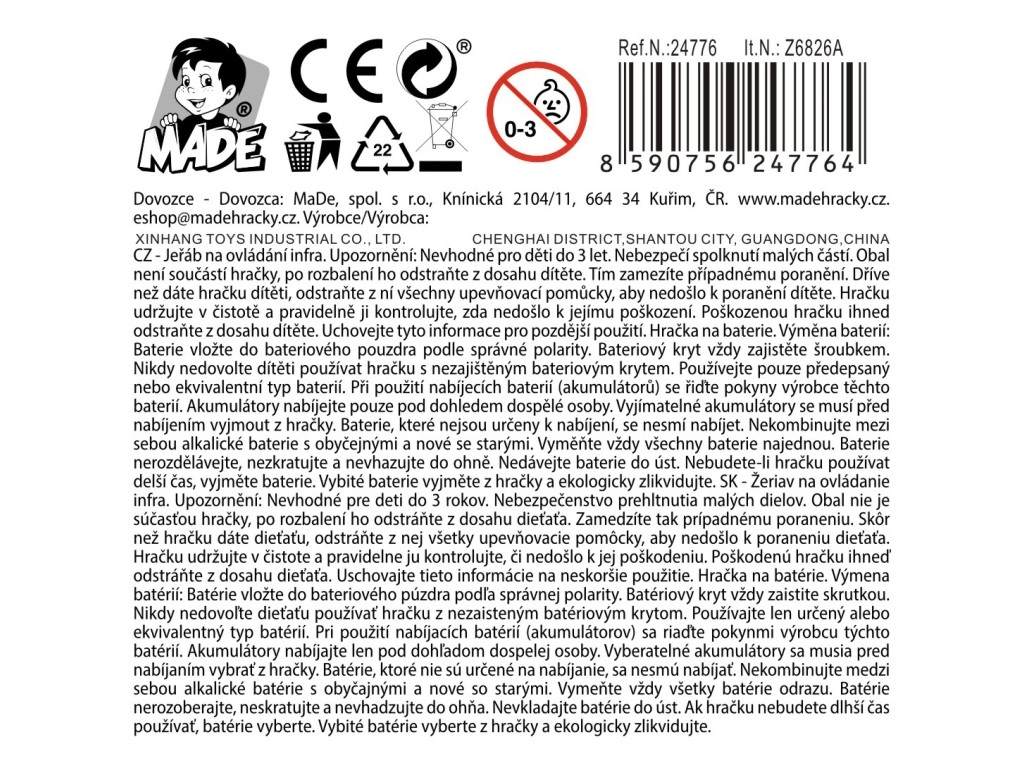 Realistiškas nuotoliniu būdu valdomas kranas pradžiugins mažus statytojus nuo 6 metų. Siūlo aukštį iki 99 cm, patvarią plastikinę konstrukciją ir paprastą valdymą su Open touch tipo pulteliu. Veikia su Li‑ion 3,7 V / AA baterijomis ir suteikia valandas kūrybiško žaidimo su statybine technika.