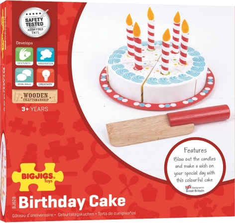 Atraskite šventės žavesį su mūsų mediniu gimtadienio tortu pjaustymui iš Bigjigs Toys. Šis žaislas idealiai tinka mažiems vaikams, kurie pažįsta pasaulį per linksmus ir interaktyvius žaidimus. Tortas pakankamai didelis šešių žaislinių draugų kompanijai ir komplekte turi medinį peilį lengvam pjaustymui.