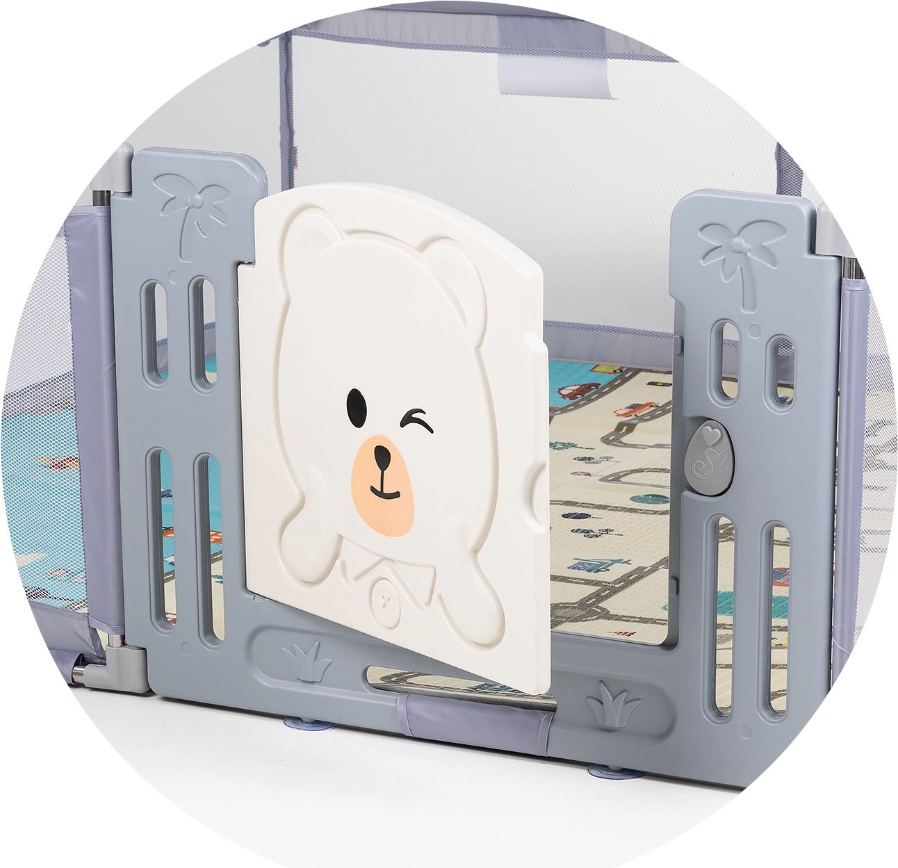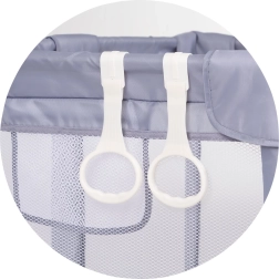 Praktiška vaikiška maniežinė tvorelė Amico elegantiškos pilkos spalvos suteikia vaikams saugią erdvę žaidimams ir poilsiui. Ji turi tvirtas dureles su mielu motyvu, kvėpuojančias tinklines sieneles geresniam matomumui ir oro cirkuliacijai bei sutvirtintą konstrukciją stabilumui užtikrinti. Lengvai surenkama, paprastai prižiūrima, komplekte yra 2 laikomieji žiedai pirmiesiems stojimosi bandymams.