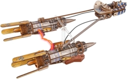 Du varikliai sujungti lanksčiais LED laidais, maitinamais baterijomis (nepridedamos), kurie sukuria ikoninį plazminio lanko efektą, žinomą iš Boonta Eve Classic.