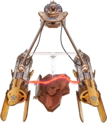 Sukonstruokite ikoninį Anakino Skywalkerio lenktyninį slinktuvą iš Star Wars pasaulio ir išstatykite jį ant elegantiško stovo su skrydžio efektu. Spalvotos faneros modelyje yra LED plazminis lankas tarp variklių, atsidaranti kabina su figūrėle ir šoninis judėjimas, imituojantis skrydį. Surinkimas vyksta be klijų ir įrankių, todėl patiks tiek kolekcionieriams, tiek modelių entuziastams.