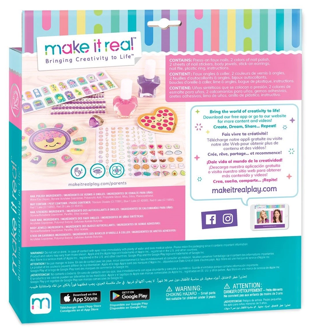 Make It Real rinkinys suteikia linksmą ir paprastą būdą susikurti originalų manikiūrą. Derinkite spalvas, lipdukus ir akmenėlius bei susikurkite stilių pagal savo nuotaiką. Viskas sukurta taip, kad būtų lengva naudoti ir suteiktų kūrybinės saviraiškos.