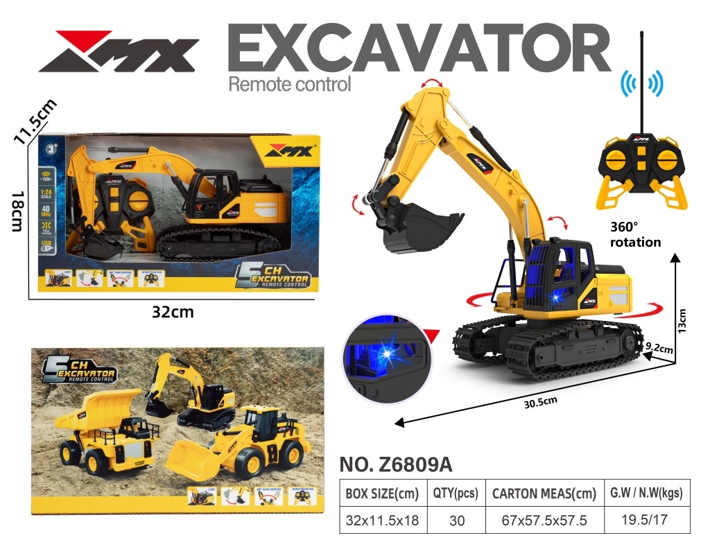 Šis detaliai pagamintas RC ekskavatorius ištikimai atkuria tikrus statybinius mechanizmus. Tvirta vikšrinė važiuoklė užtikrina stabilumą ir gerą pravažumą, o besisukanti viršutinė dalis ir funkcionalus kaušas leidžia realistiškai valdyti krovinį. Kabinos šviesos efektas suteikia autentiškumo žaidžiant prieblandoje.