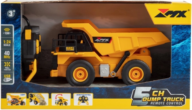 Realistiškas RC savivartis 1:24 masteliu sužavi detaliu atlikimu ir pilnai funkcine kėbulo platforma. Valdymas 40 MHz dažniu, veikimo nuotolis 10–15 m, 5 kanalų pultas, šviesos efektai ir įkraunama 3,7 V baterija užtikrina smagų ir tolygų važiavimą 2–3 km/h greičiu.