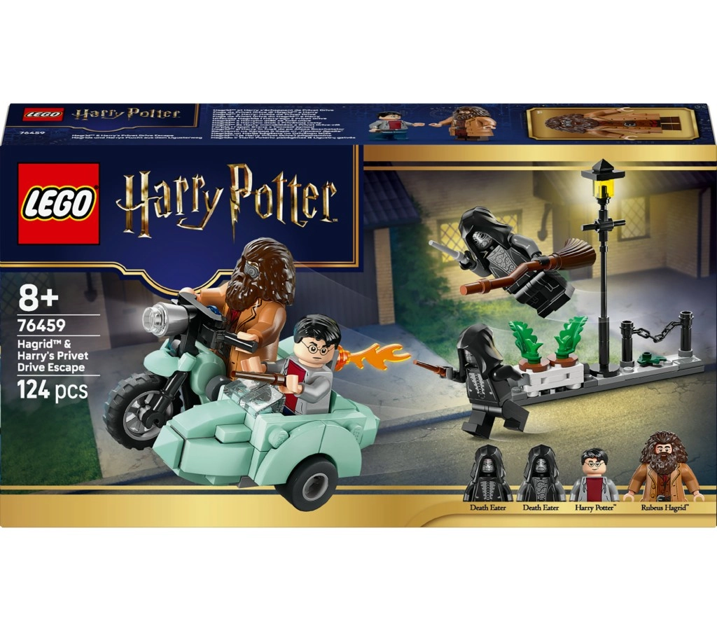 Šis rinkinys tikroviškai perteikia dramatišką pabėgimą nuo Mirtėdžių: Hagridas laiko savo šviesiai žalio motociklo vairą, o Haris saugiai sėdi erdvioje šoninėje priekaboje. Autentišką išvaizdą papildo permatomas priekinis žibintas, tvirtos padangos ir tamsiai nusiteikusi Privet Aleyjos mini scena su lempa, tvora ir apverčiamu gėlių vazonu.