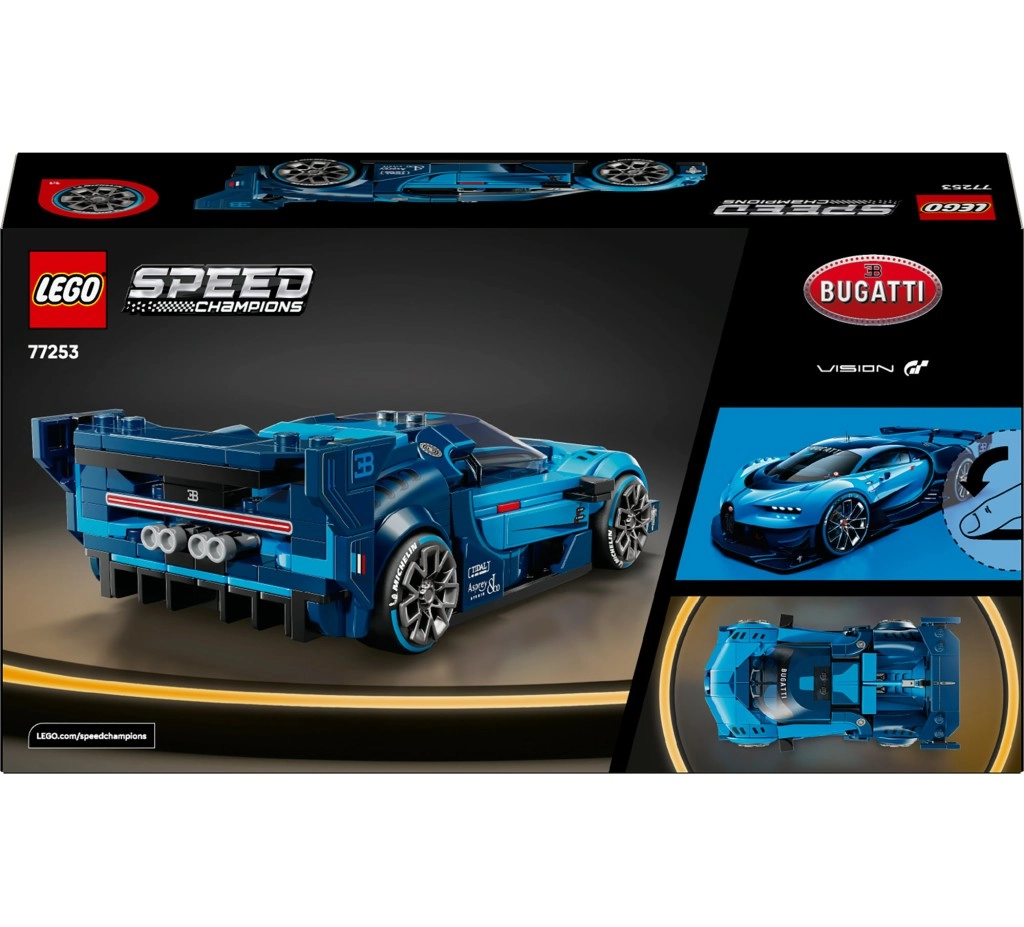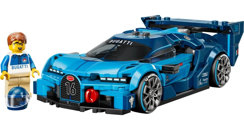 Patirkite čempionatų adrenaliną su modeliu BUGATTI Vision GT, kuris stebina tiksliai atkartota kėbulo forma, priekinių pasagos formos grotelių numeriu 16, aštuoniais žibintais, stogo peleku ir ryškiu galiniu sparnu. Platūs padangos su spauda suteikia automobiliui realistinę lenktyninę išvaizdą, o vairuotojo minifigūrėlė su BUGATTI logotipu patogiai telpa į kabiną.