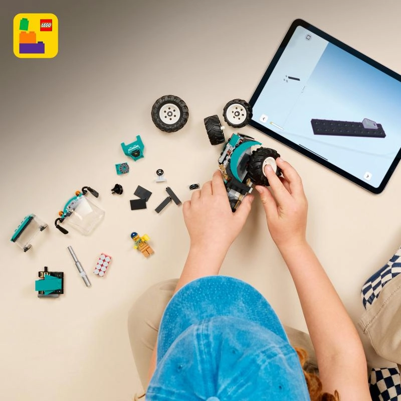 Konstravimas lengvas ir smagus su LEGO Builder programėle, kur galima modelį priartinti, sukioti 3D formatu ir sekti eigą. Vaikai lavina smulkiąją motoriką, vaizduotę ir pasakojimų kūrimą, mėgaudamiesi realistiškomis žemės ūkio mašinos detalėmis.