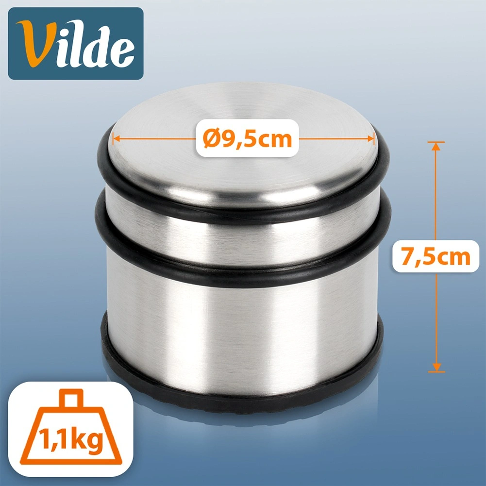 Elegantiškas ir sunkus nerūdijančio plieno durų stoperis sidabrinės spalvos – idealus butui, namui ar biurui. Didelis 1,1 kg svoris užtikrina stabilumą, todėl durys liks ten, kur reikia. Guminiai žiedai aplink korpusą saugo duris nuo smūgių, o guminė bazė neleidžia slysti ir apsaugo grindis.