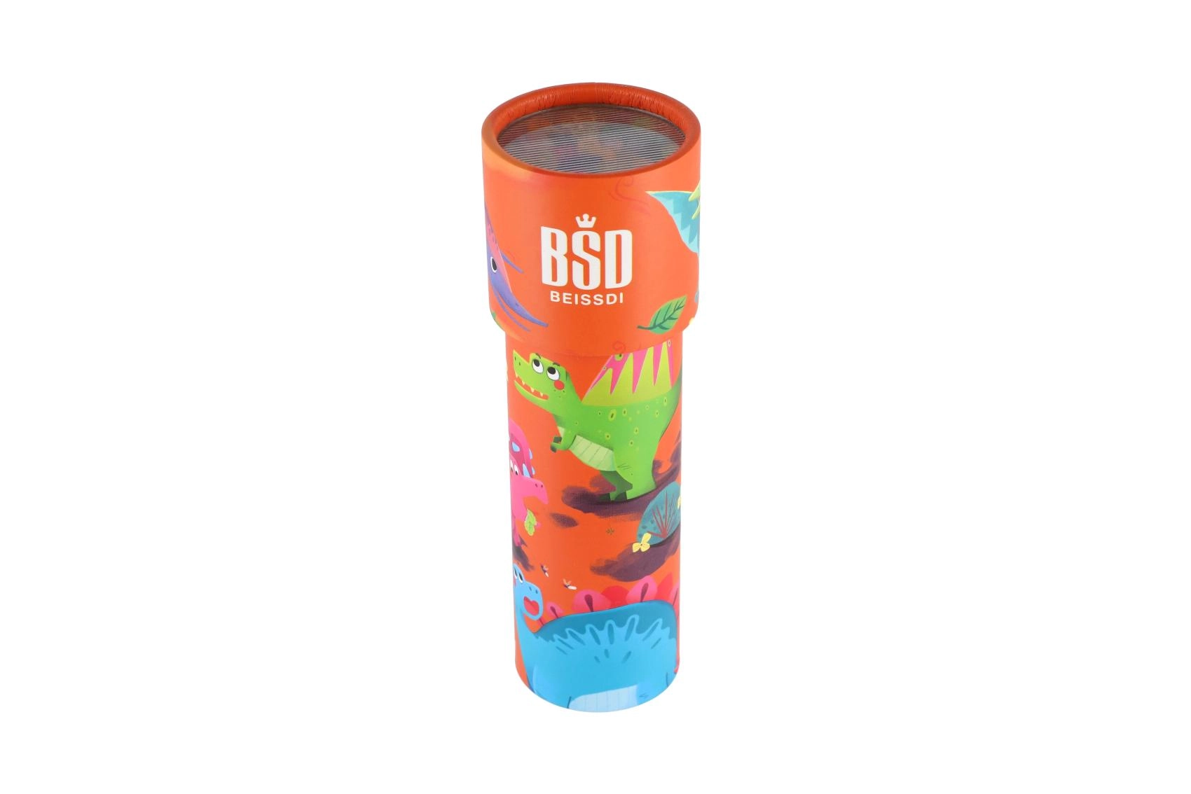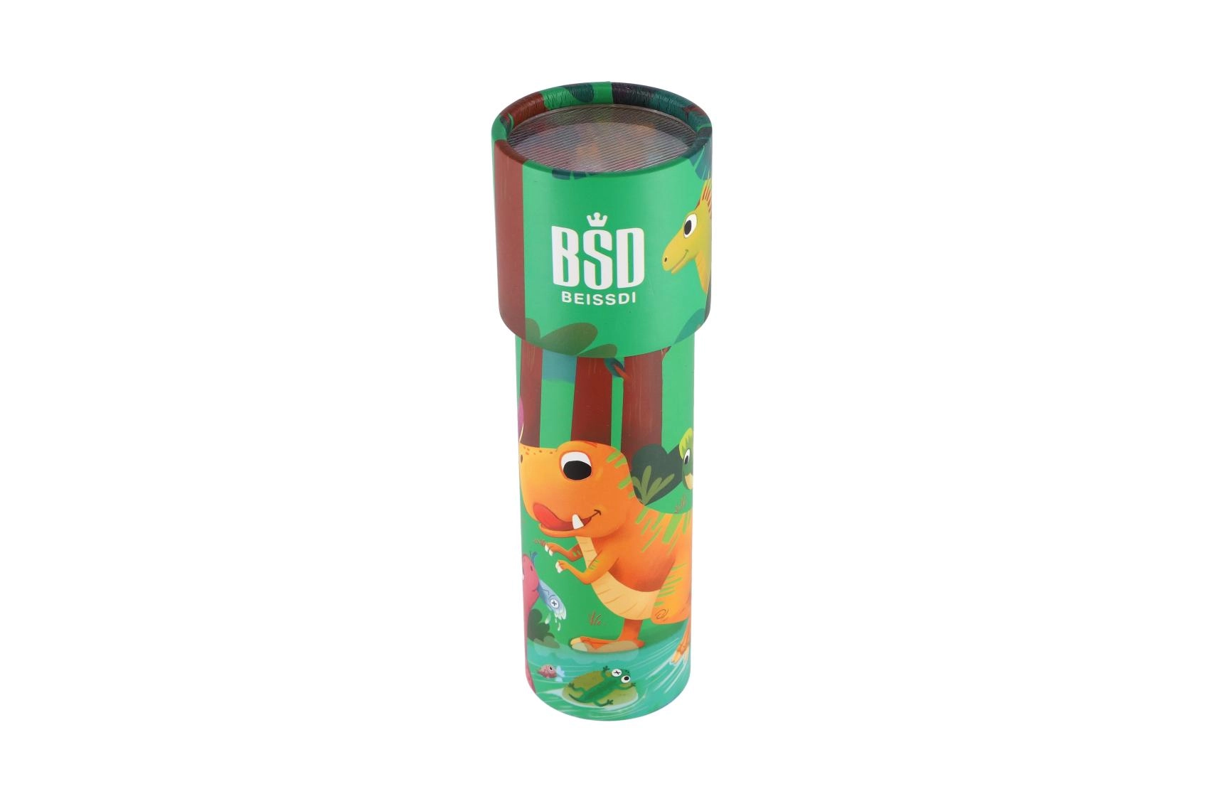 Atraskite fantazijos pasaulį su vaikišku kaleidoskopu su dinozaurų motyvais. Užtenka pažvelgti vidun ir pasukus vamzdelį pamatysite begalinius besikeičiančius spalvotus raštus. Lengvas, patvarus ir ideali maža dovana, kuri ilgam užims vaikus.