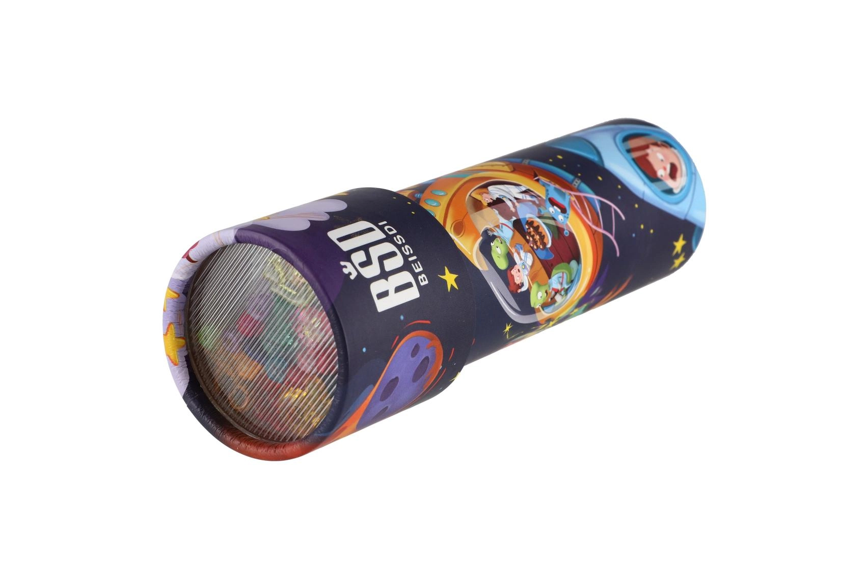 Žaismingi spalvoti atspaudai traukia dėmesį ir skatina vaizduotę, stebėjimo gebėjimus ir smulkiąją motoriką. Kaleidoskopas – puikus pasirinkimas kaip maža dovana, paskatinimas ar pramoga kelionėse.