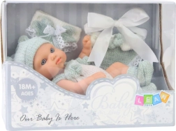 - 18 cm lėlytė, smėlinukas, kepurytė, kojinaitės, kelnaitės, seilinukas, dovanų dėžutė