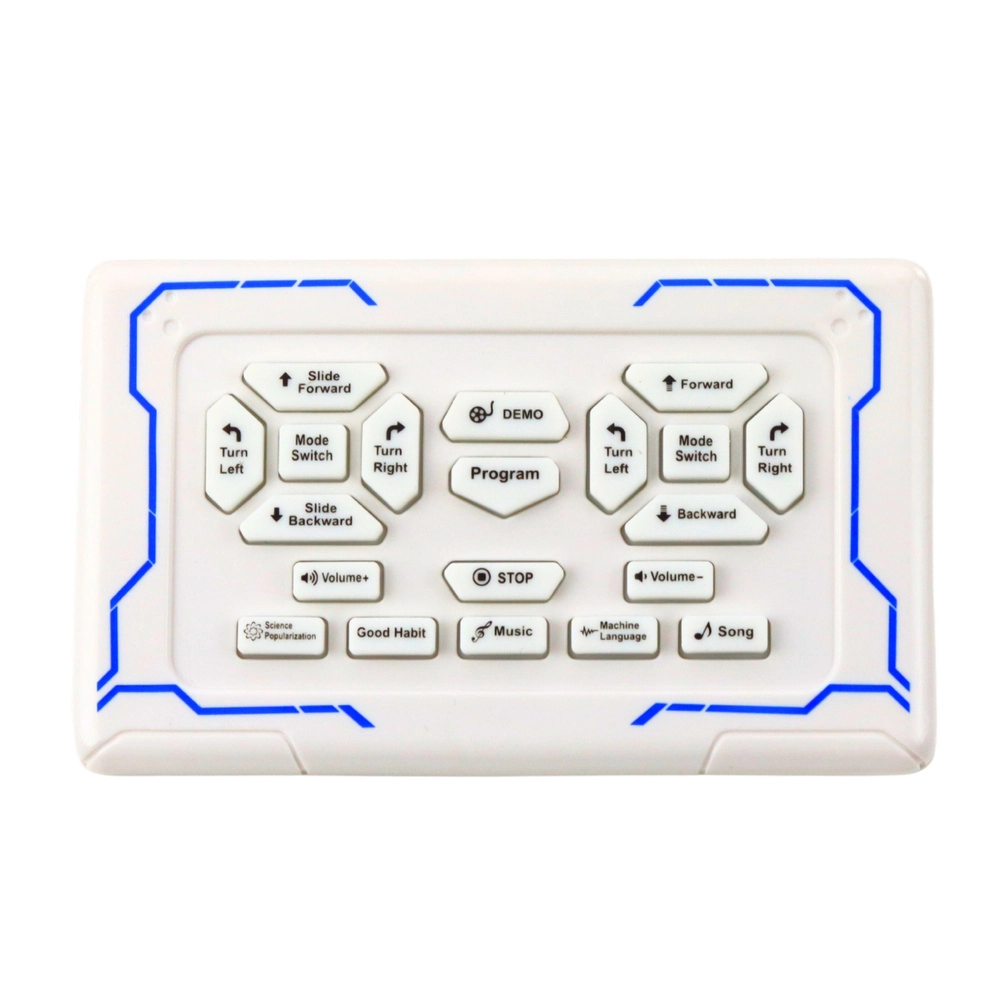 Aiškus pultelis su mygtukais kryptims, judėjimui, muzikai, demo, programai ir garsumui leidžia vaikams greitai perprasti visas roboto funkcijas.
