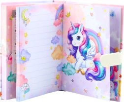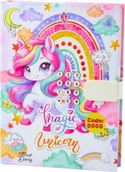 Magiškas vaikiškas dienoraštis su vienaragio motyvu ir skaitmenine spyna saugo paslaptis ir prisiminimus. Atrakintas jis groja linksmą melodiją, o viduje laukia spalvoti liniuoti puslapiai su iliustracijomis rašymui ir piešimui. Ideali dovana, jungianti pramogą, privatumą ir kūrybiškumą.