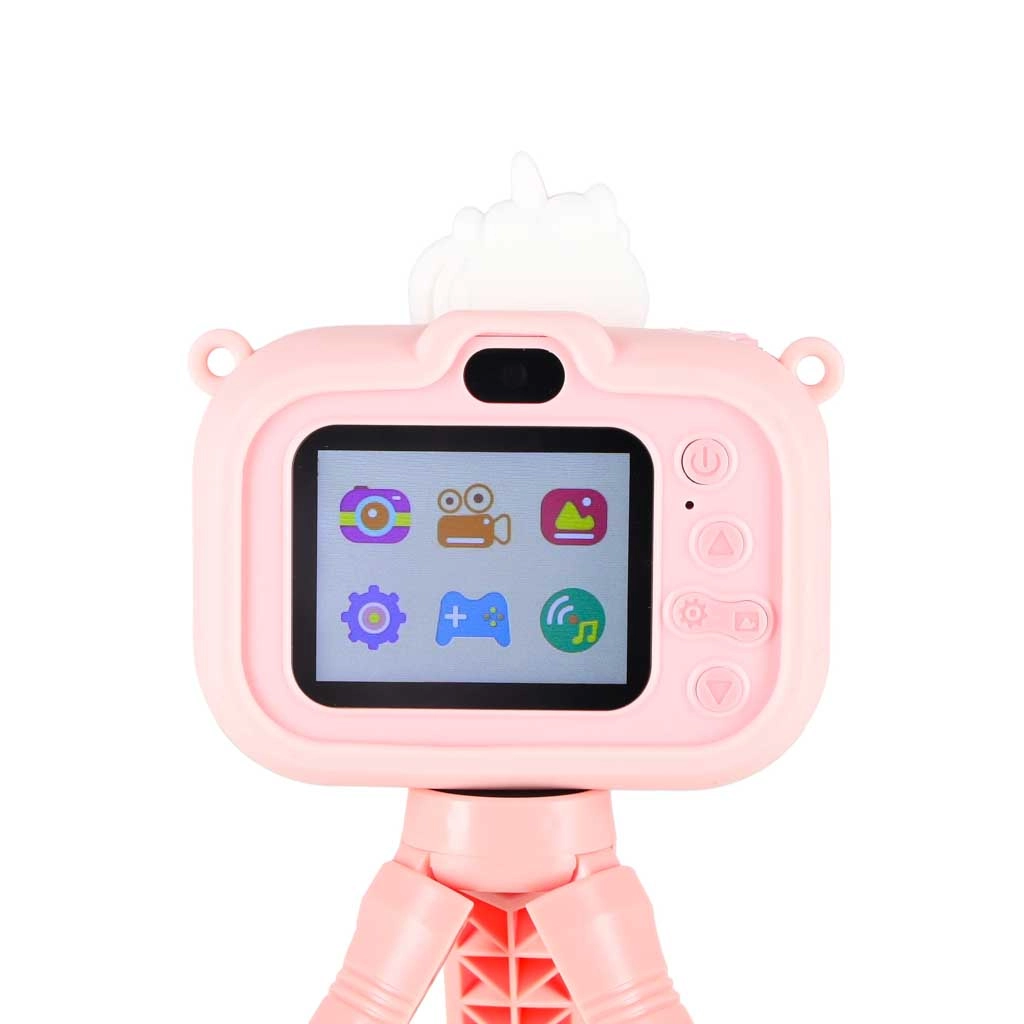 Suteikite vaikams linksmą įžangą į fotografijos pasaulį. Šis lengvas ir patvarus rožinis vaikiškas fotoaparatas su vienaragio motyvu turi aiškų 2,0" IPS ekraną, filmuoja 1080p raiška ir dėl dvejų kamerų leidžia daryti ir asmenukes, ir klasikines nuotraukas. Malonus liesti silikoninis dėklas saugo nuo smūgių ir suteikia žaismingą išvaizdą.