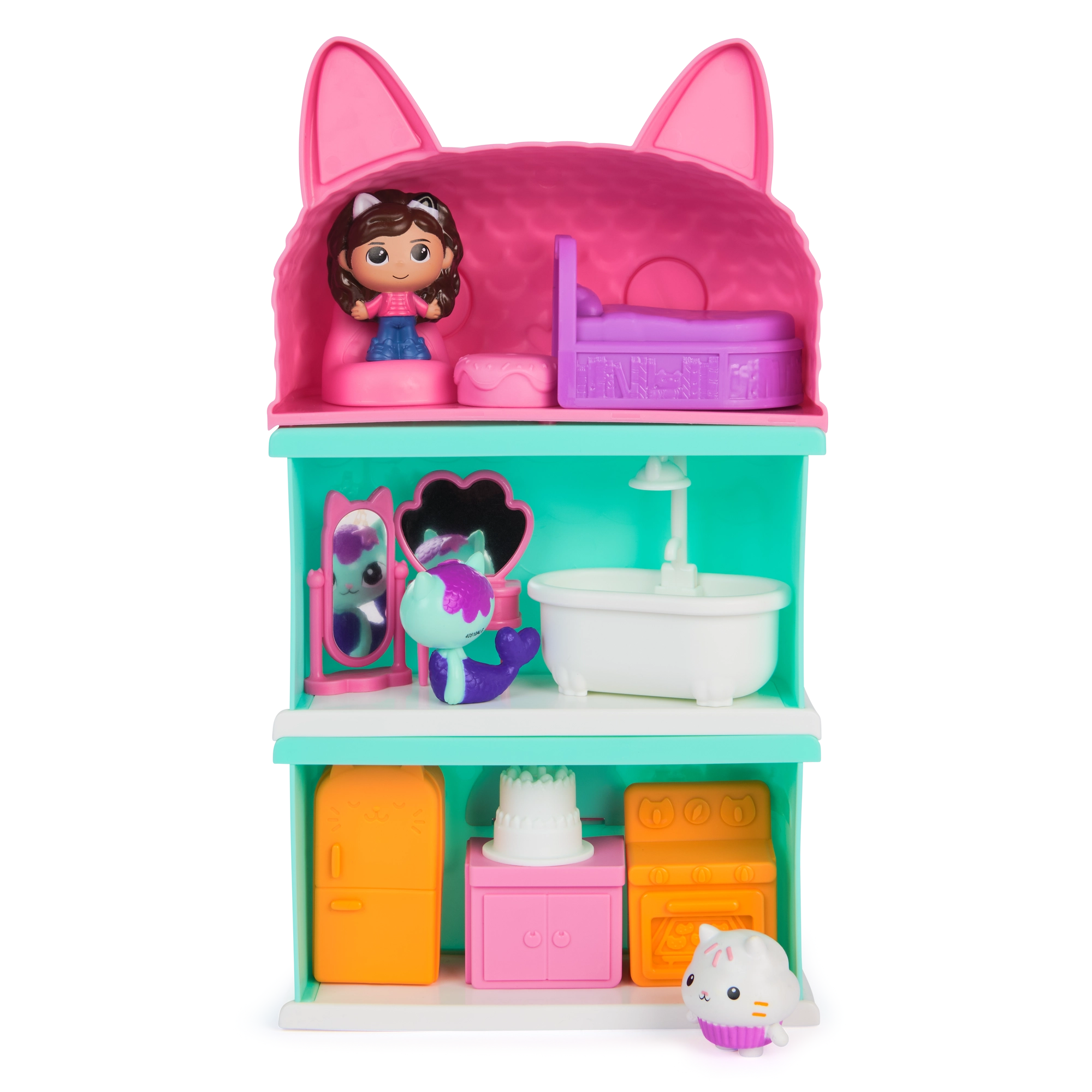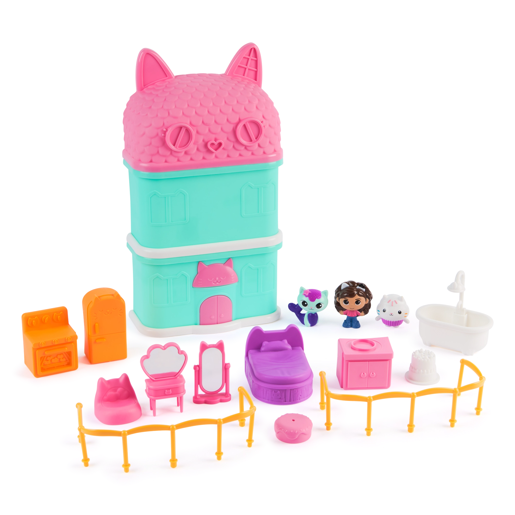Atraskite kerintį GABBY'S DOLLHOUSE pasaulį su kompaktišku mini nameliu, kuris siūlo kūrybišką žaidimą, 3 figūrėles ir gausius priedus. Puikiai tinka mažiesiems serialo gerbėjams – skatina vaizduotę, pasakojimų kūrimą ir smulkiąją motoriką. Dėl nešiojamo dizaino puikiai tinka tiek namuose, tiek kelionėse.