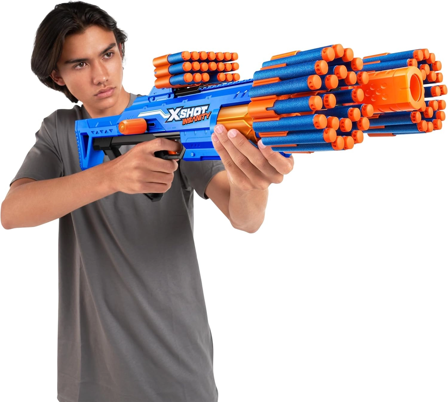 X-Shot Insanity Berzerko šautuvas sukurtas maksimaliam žaidimo tempui tiek namuose, tiek lauke. Dėl pompos mechanizmo ir būgninio dėtuvą turinčio dizaino galėsite iššauti iki 8 šūvių greita seka, o Air Pocket technologija originaliose X-Shot strėlėse pagerina nuotolį, stabilumą ir tikslumą.