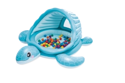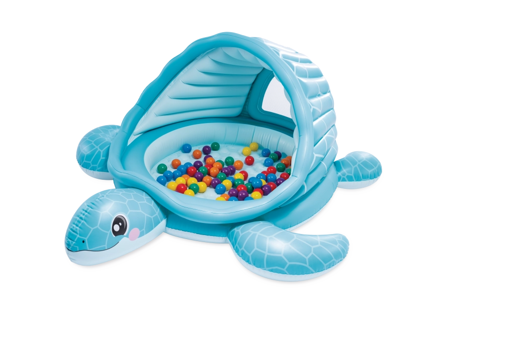 Žavus pripučiamas vėžlio formos baseinėlis su praktišku stogeliu suteiks vaikams saugią ir patogią vietą vasaros pramogoms. Jame yra minkštas pripučiamas dugnas patogumui, šešėlį teikiantis stogelis su tinkleliniais langeliais vėdinimui ir priežiūrai, o taip pat galima naudoti kaip kamuoliukų baseiną. Patvari PVC medžiaga ir lengvas pripūtimas bei išleidimas paverčia jį idealiu papildymu sodui ar terasai.
