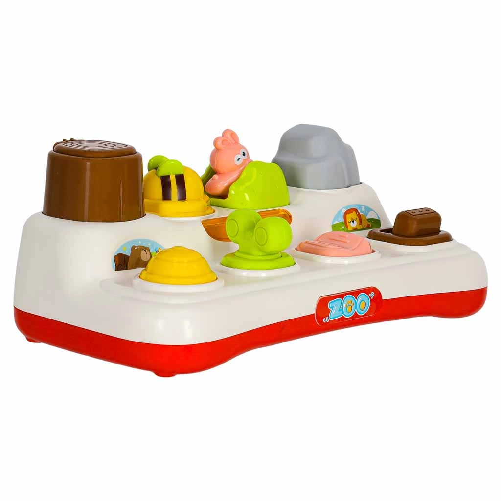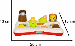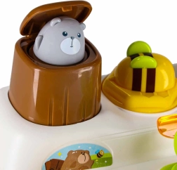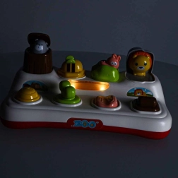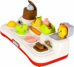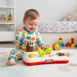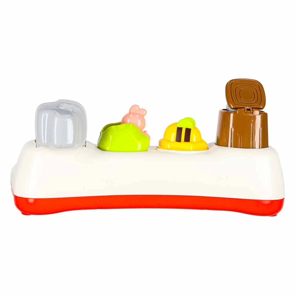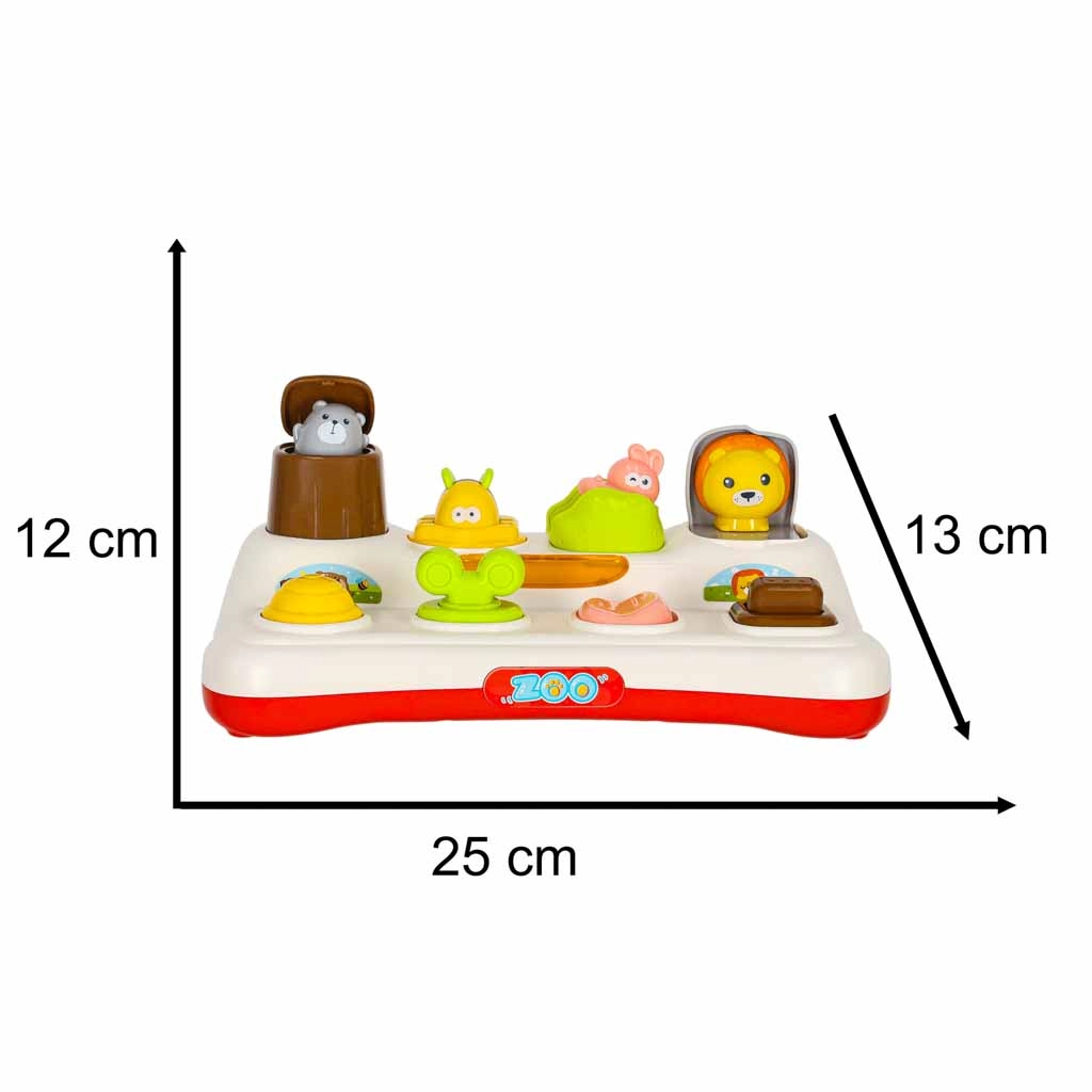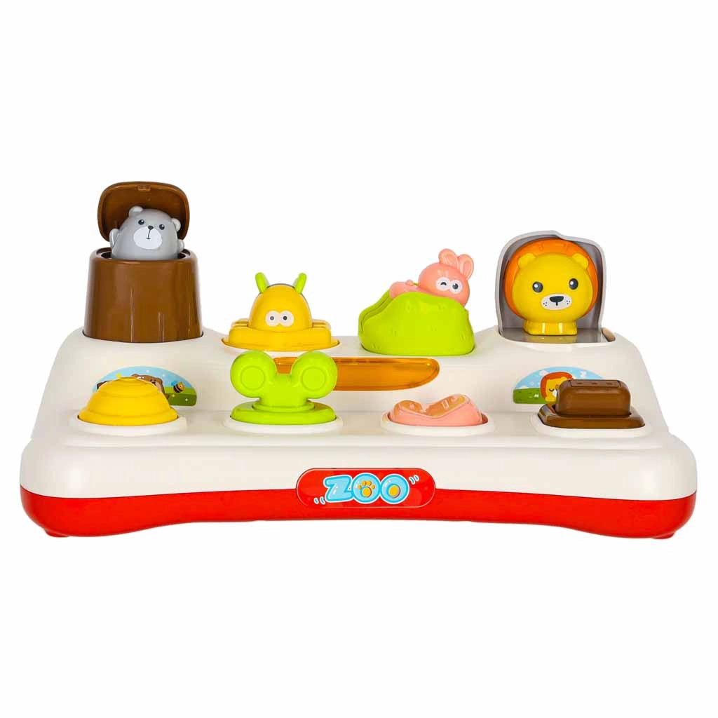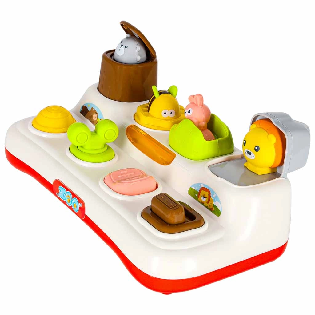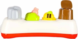 Atraskite mokymosi džiaugsmą su šiuo interaktyviu iššokančiu žaislu vaikams nuo 18 mėnesių. Vaikas spaudžia, stumia arba suka valdiklius, o iš langelių iššoka spalvoti gyvūnėliai. Žaislas lavina smulkiąją motoriką, loginį mąstymą ir supratimą apie priežasties–pasekmės ryšius. Dėl šviesos efektų ir melodijų žaidimas tampa dar patrauklesnis, be to, galima visiškai nutildyti garsą.