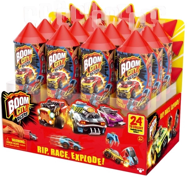Atraskite sprogstančią pramogą su BOOM CITY RACERS automobiliais vienpaketyje S1! Kiekvienas automobilis paslėptas raketinėje paleidimo kapsulėje, primenančioje fejerverką, ir atsitrenkęs tiesiog „sprogsta“ dėl efekto. Dėka įtempimo mechanizmo automobilis akimirksniu šauna į priekį. Surinkite visus 24 modelius, įskaitant retus ir itin retus egzempliorius.