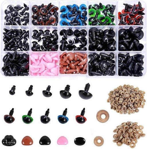 Universalus rinkinys su akimis, nosimis ir fiksuojančiomis poveržlėmis, leidžiantis lengvai ir saugiai pritvirtinti detales prie audinio ar mezginių. Idealu maskotams, žaislams, lėlėms ir kitiems „pasidaryk pats“ projektams. Viskas tvarkingai sudėta į patogų plastikinį dėklą, kuris palengvina laikymą ir rūšiavimą.