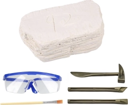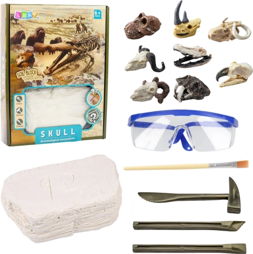 Šis archeologinis rinkinys leidžia vaikams patirti tikrus „kasinėjimus“. Tvirto gipso bloko viduje paslėpta paslaptinga kaukolė – ji gali priklausyti įvairiems priešistoriniams gyvūnams, todėl kiekvienas atradimas yra unikalus. Naudodami dlaktus/chiselius, plaktuką ir teptuką vaikai išmoks atsargiai atidengti radinį, jį valyti ir tyrinėti detales.