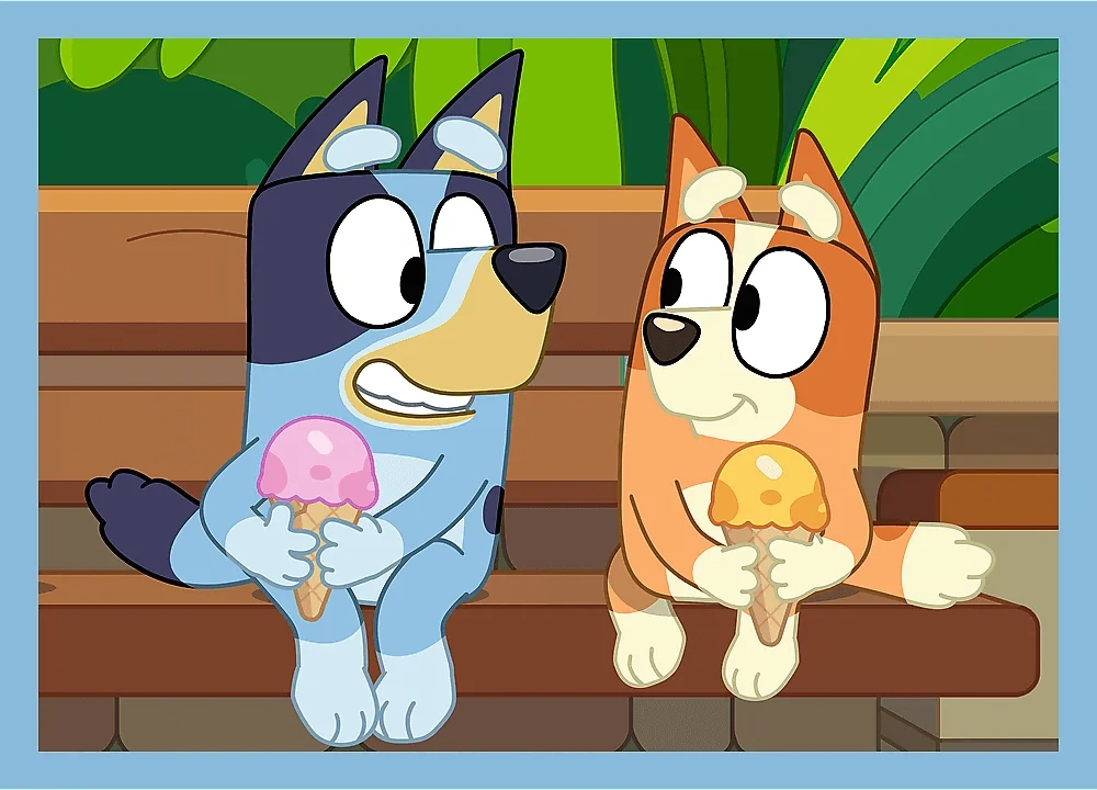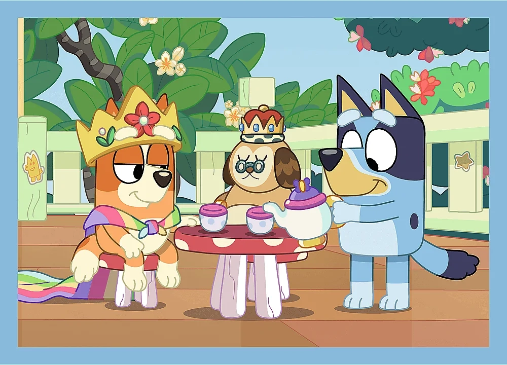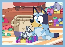 Vaikiška dėlionė su mėgstamo serialo BLUEY motyvais siūlo rinkinį 4 viename su skirtingais sudėtingumo lygiais (35, 48, 54 ir 70 detalių). Puikus pasirinkimas ugdyti kantrybę, smulkiąją motoriką ir loginį mąstymą.