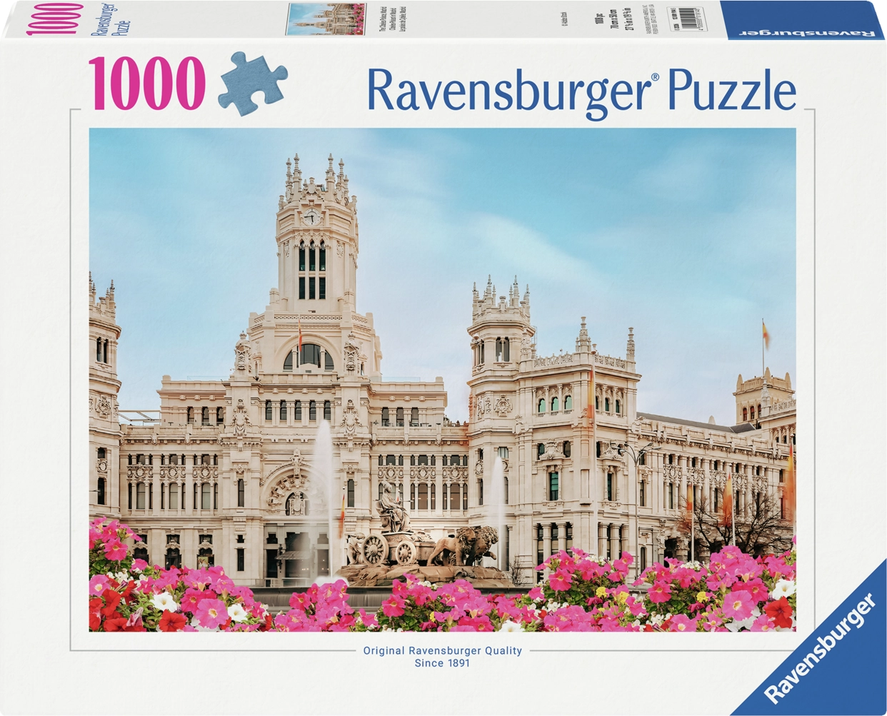 Atraskite Madrido žavesį su kokybiška RAVENSBURGER dėlione. Dėlionė su ikoniškojo Paláco Cibeles motyvu siūlo 1000 dalių, kurios puikiai dera tarpusavyje, o sudėjus sukuria 70 × 50 cm dydžio paveikslą. Idealu poilsiui, sutelktumo lavinimui ir džiaugsmui užbaigus kūrinį.