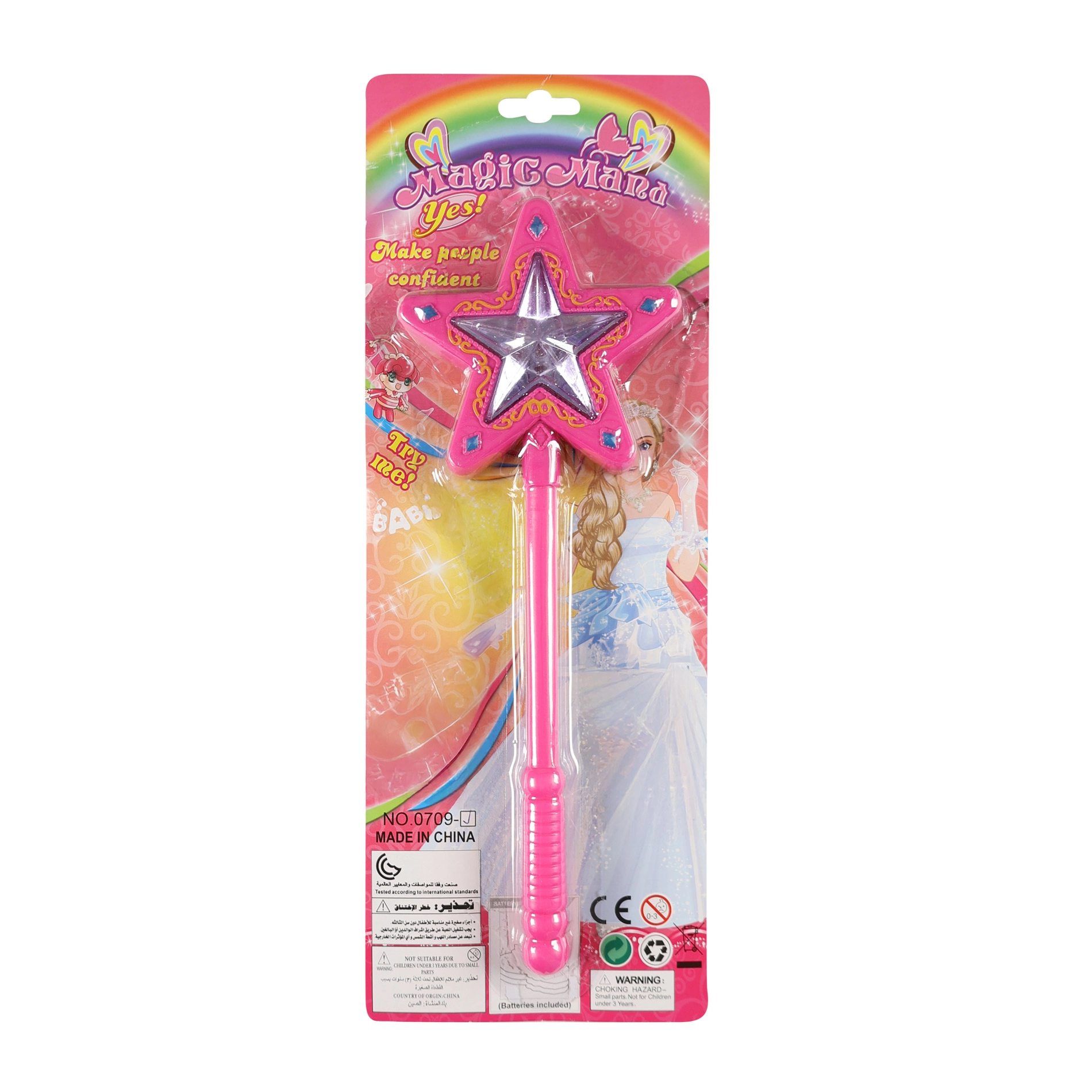 Nustebinkite mažąsias princeses ir fėjas magišku rekvizitu – magiška lazdelė su šviesos ir garso efektais. Pamojus lazdelė spalvotai mirksi ir pasigirsta magiškas garsas. Pakuotėje yra 2× LR44 baterijos, todėl pramoga gali prasidėti iš karto.