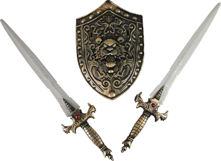 Tapkite drąsiu riteriu ir saugokite savo karalystę! Vaikiškas riterių rinkinys su skydu ir dviem 53 cm kardais – puikus pasirinkimas veiksmo kupiniems vaidmenų žaidimams. Jis dera saugų pramogą ir vaikų vaizduotės ugdymą – namuose, sode ar per karnavalą.
