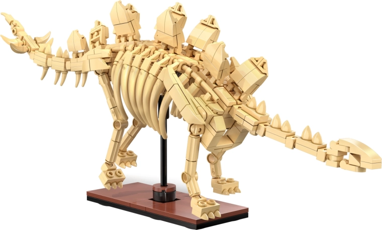 - Iš viso 825 detalės (Triceratopsas 272, Stegozauras 297, Velociraptorius 256; perstatytas T‑Rex 565)