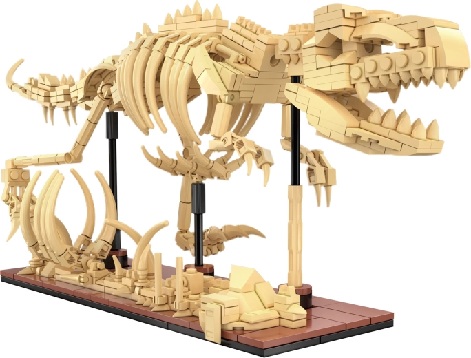 - Perstatymas į T-Rexą: sujungus visas dalis (565 detalės) sukuriamas didelis ekspozicinis modelis