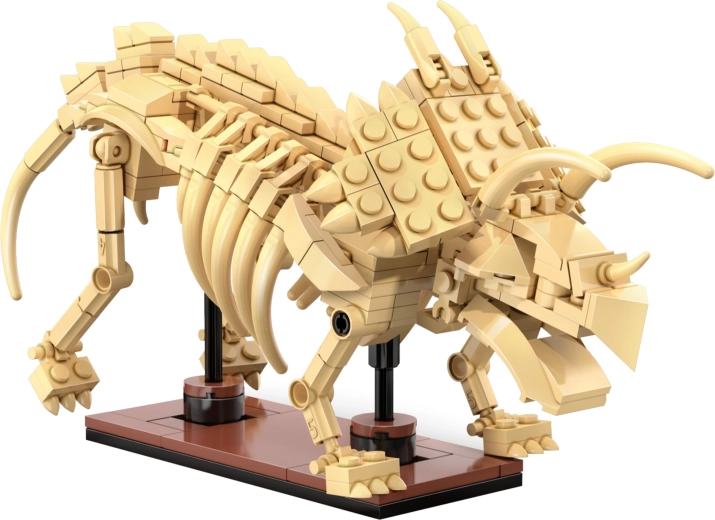 Surinkite Triceratopso, Stegozauro ir Velociraptoriaus skeleto modelius iš 825 detalių ir eksponuokite juos ant stovelių. Kiekvienas modelis turi judančius sąnarius dinamiškoms pozoms.