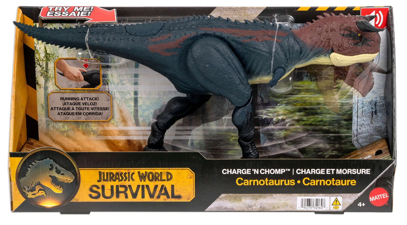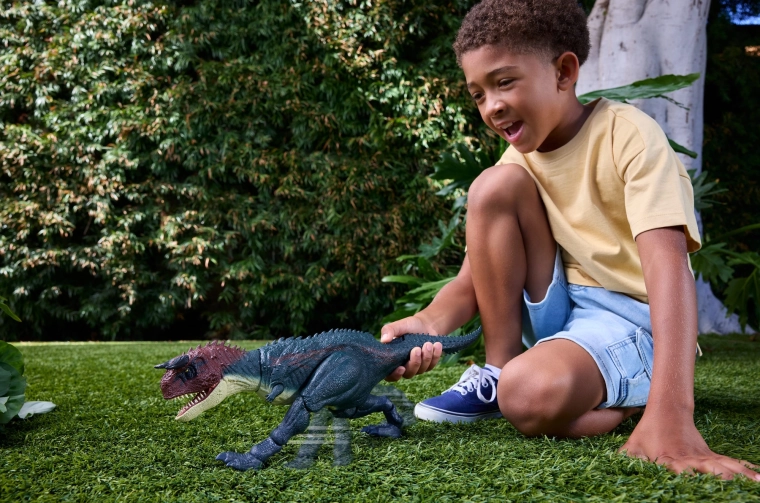 Atraskite veiksmo kupiną žaidimą su dinozaurais dėka figūrėlės Jurassic World Karnotaurus, kurios aukštis apie 20 cm. Ji siūlo interaktyvų judėjimą, riaumojančius garsus, atsiveriančius žandikaulius ir detalią, filmų įkvėptą išvaizdą. Paspaudus mygtuką ties uodegos pagrindu, įsijungia realistinis bėgimas su judančiomis kojomis ir „kandimo“ veiksmais, kurie skatina vaizduotę ir dinamiškas istorijas.