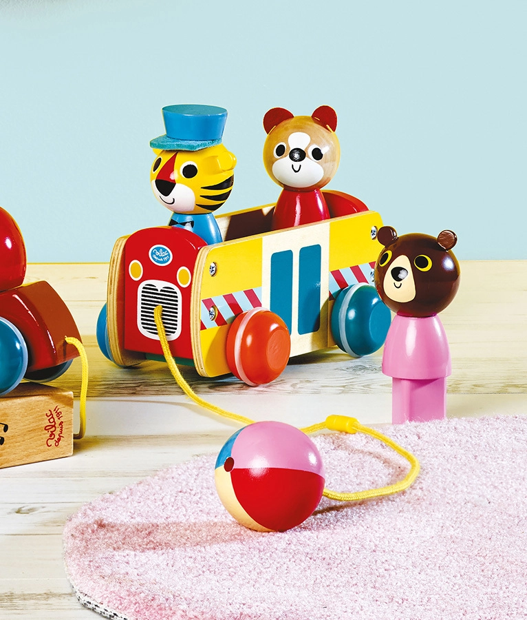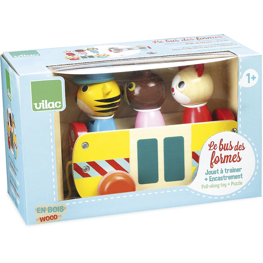Šis vilkimas autobusas pagamintas iš aukštos kokybės medienos ir siūlo ne tik pramogą, bet ir iššūkį mažiesiems mąstytojams. Ryškios spalvos ir gyvūnėliai, kuriuos galima įdėti ir išimti, skatina vaikų raidą keliose srityse: