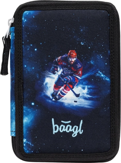 Šis trijų skyrių penalas su patraukliu ledo ritulio motyvu padės tvarkingai susidėti mokyklines priemones. Tvirta tekstilinė konstrukcija, sutvirtinti kraštai ir kokybiški YKK užtrauktukai užtikrina ilgą naudojimą net kasdien. Elastiniai laikikliai sukurti taip, kad patikimai laikytų tiek plonus pieštukus, tiek ir storas kreideles bei flomasterius.