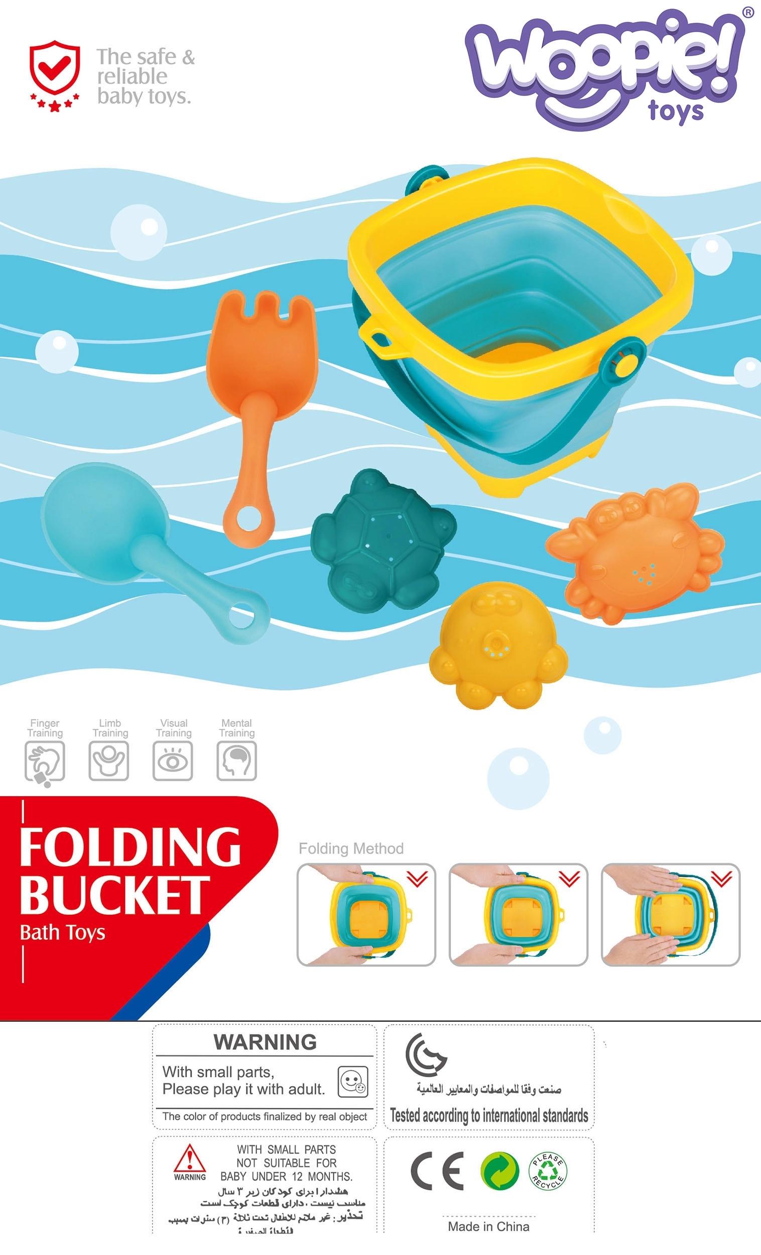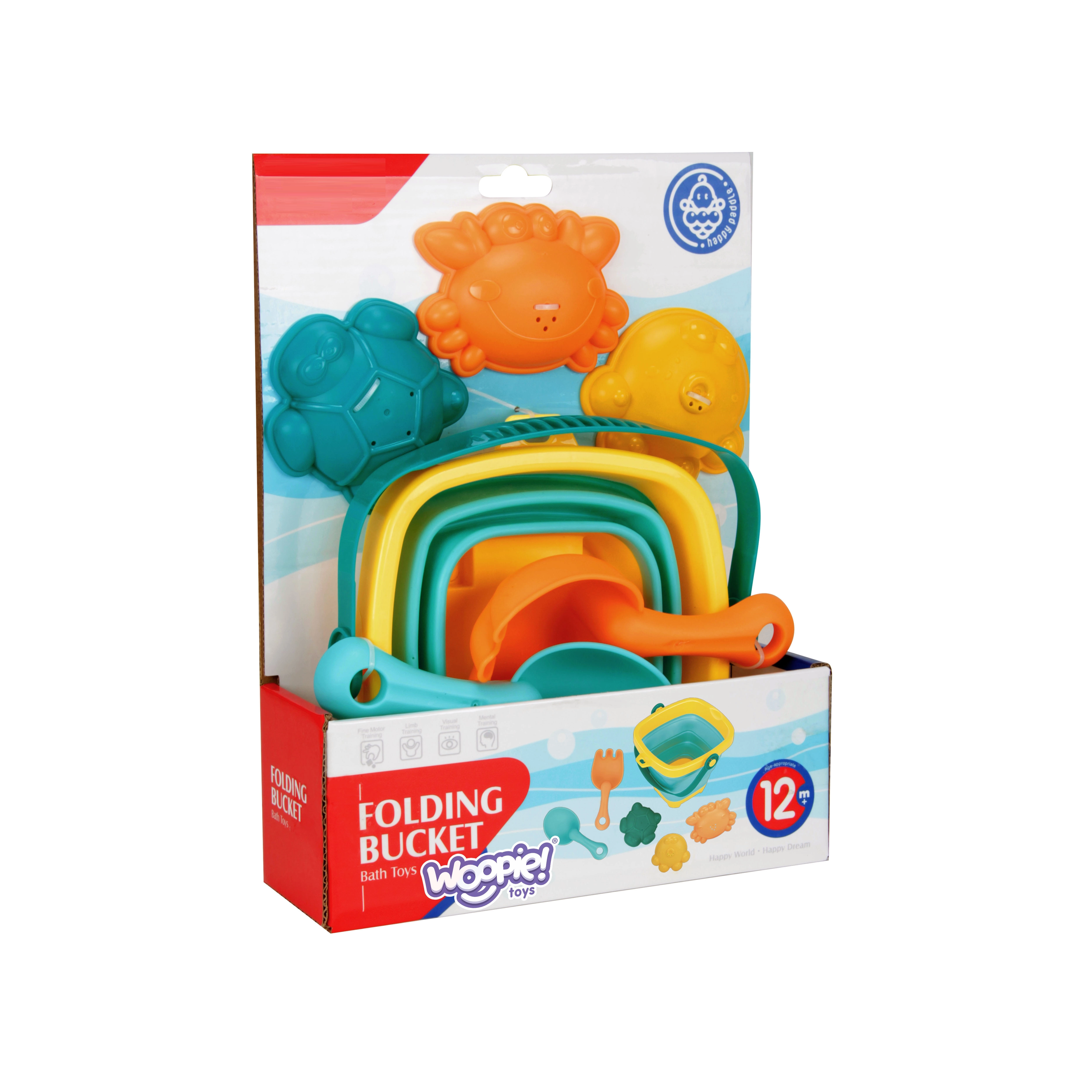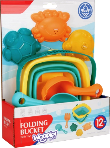 Su šiuo spalvingu WOOPIE rinkiniu vaikai patirs begalinį džiaugsmą prie vandens ir smėlyje. Sulankstomas silikoninis kibiras su plastikiniu kraštu ir dugnu akimirksniu susispaudžia į plokščią formą, todėl užima beveik jokios vietos ir lengvai telpa į bet kurį krepšį. Elastingi įrankiai ir formelės yra atsparesni įtrūkimams ir patogūs mažoms vaikiškoms rankoms.