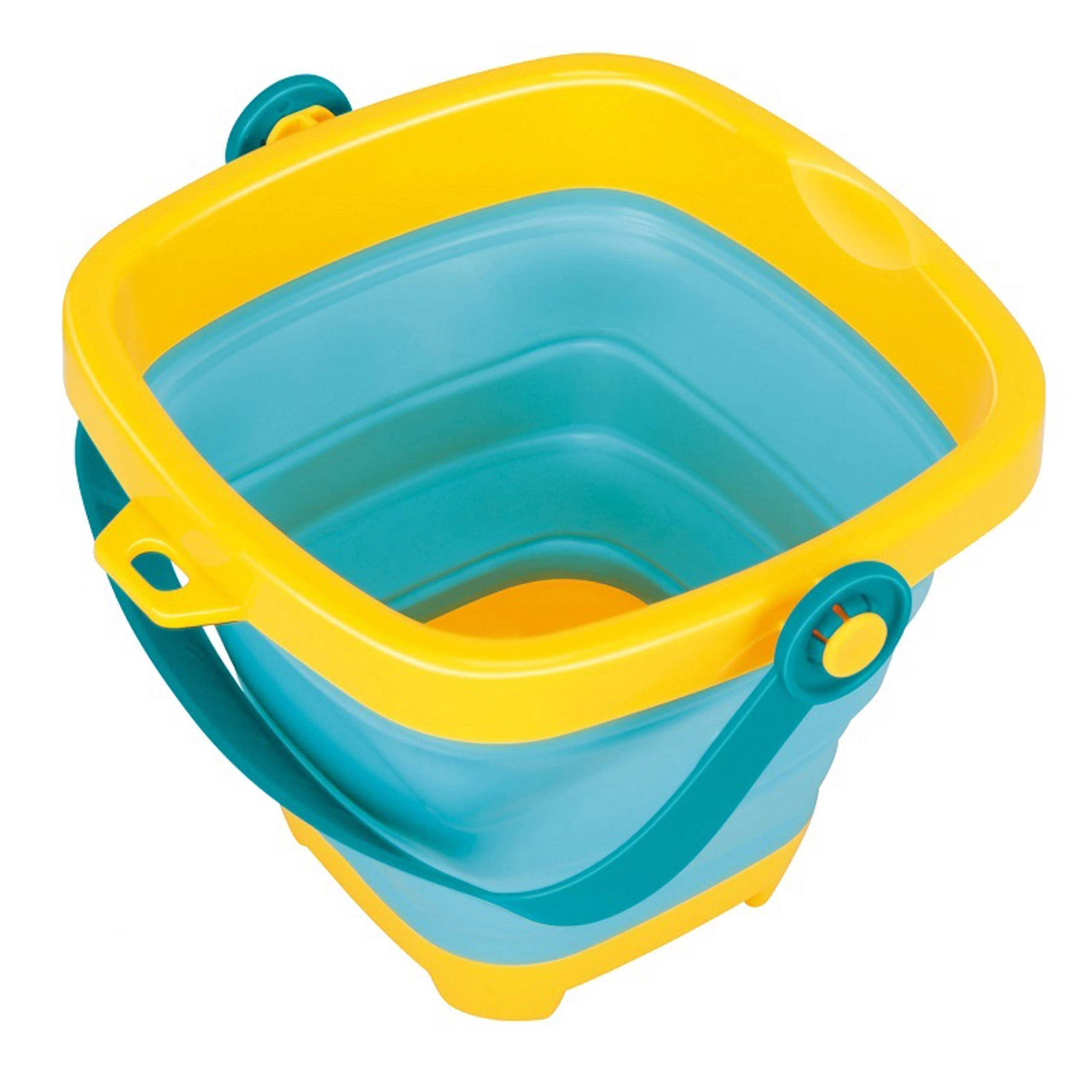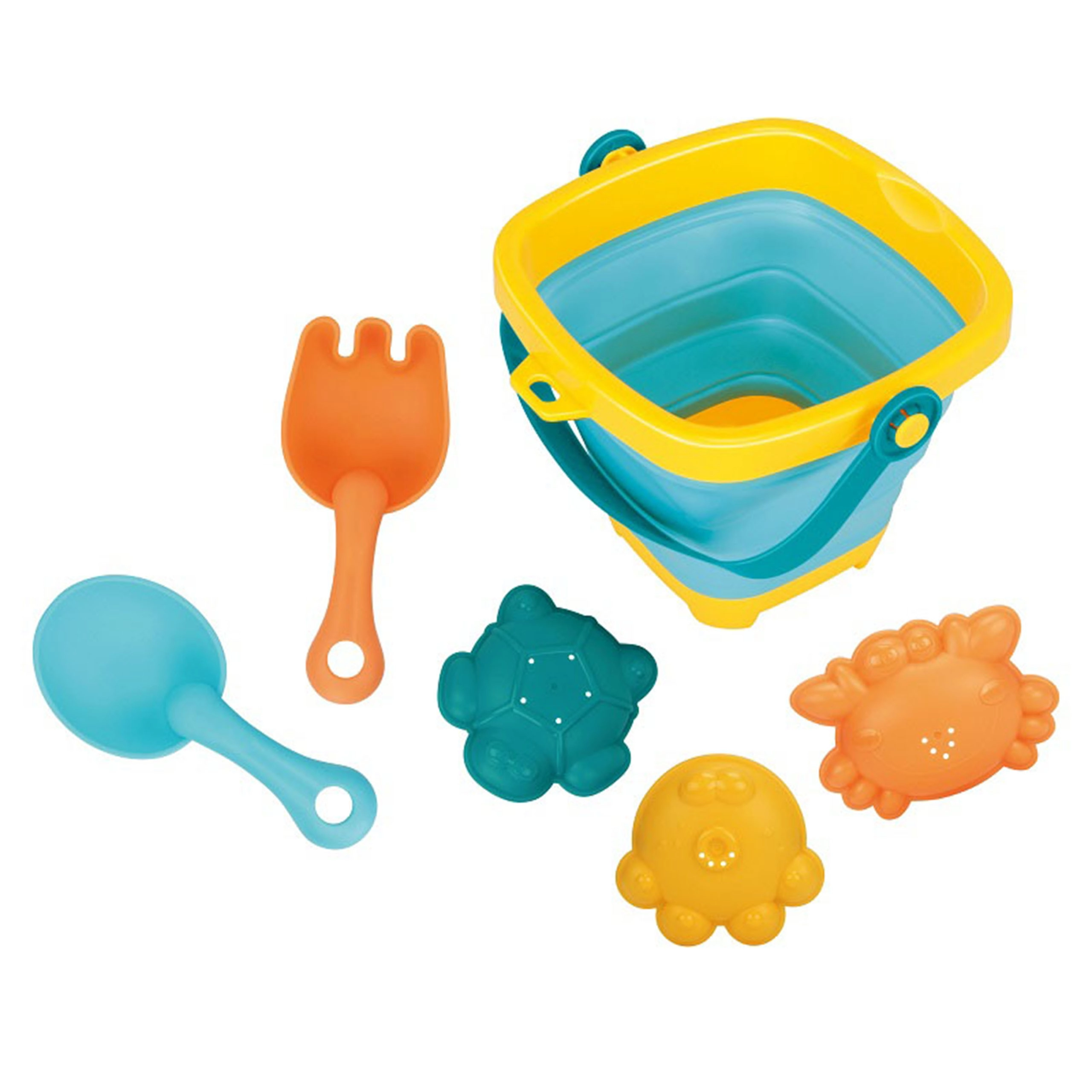 Praktiškas smėlio ir paplūdimio rinkinys vaikams nuo 12 mėn.: sulankstomas silikoninis kibiras su plastikiniu kraštu ir rankena, semtuvas, grėbliukai ir trys formelės. Dėka armonikinio sulankstymo kibiras taupo vietą, yra lengvas nešti ir idealiai tinka kuprinei, vežimėliui ar paplūdimio krepšiui. Patvarūs ir elastingi elementai puikiai tinka smėlio dėžei, paplūdimiui ir sodui.
