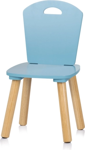 Šiuolaikiškas CHIPOLINO vaikiško stalo ir dviejų kėdžių rinkinys sujungia komfortą, saugumą ir laiko patikrintą dizainą mėlynos spalvos derinyje. Stabilios medinės kojelės ir lygūs suapvalinti kraštai užtikrina patogų ir saugų naudojimą piešiant, žaidžiant ar valgant.