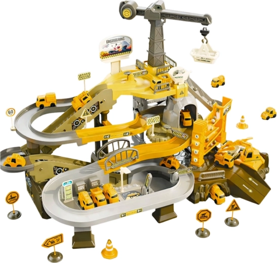 Interaktyvi kasyklos automobilių stovėjimo aikštelė – gausiai aprūpintas žaislas mažiesiems statytojams. Dėl automatinės elektrinės rampos transporto priemonės lengvai pakyla į aukštesnius aukštus, o pasukamas kranas perkelia krovinius ir rutuliukus, imituojančius išgautą medžiagą. Daugiapakopė trasa su posūkiais, nusileidimais ir tuneliais suteikia dinamišką žaidimą ir realistiškus kasyklos bei statybų scenarijus.