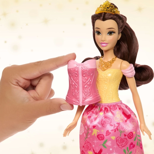Atrado magišką pasakos pasaulį su lėle Bela, įkvėpta Disney Gražuolė ir pabaisa. Gaunate 2 stilius viename – elegantišką pokylį ir jaukią arbatos popietę. Rinkinyje yra 2 keičiami korsetai, 2 medžiaginiai sijonai, ilgi šukuojami plaukai, tiara ir teminiai aksesuarai. Dėl lankstų jungčių Belą lengva statyti į įvairias pozas kūrybiniam žaidimui.
