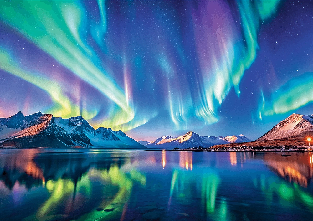 Elegantiška dėlionė su poliarinės pašvaistės motyvu – idealiai tinka gamtos, kelionių ir naktinio dangaus mylėtojams. Dėl aukštos kokybės spaudos ir tikslaus išpjovimo detalės puikiai susijungia, o galutinis vaizdas atrodo kaip dekoratyvinis plakatas. Pridėtas plakatas masteliu palengvina orientaciją sudėtingesnėse vietose ir paspartina dėliojimą.