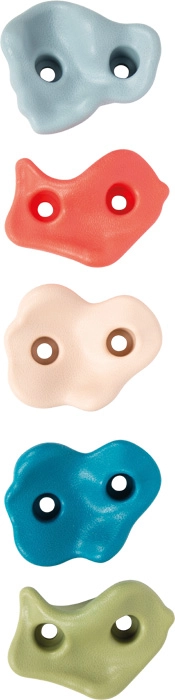 Penkių patvarių laipiojimo laikiklių SMALL FOOT rinkinys suteikia lipimo džiaugsmą vaikų kambaryje ir sode. Dėl tekstūruoto paviršiaus, dvipunkčio tvirtinimo nuo pasisukimo ir laisvo išdėstymo lengvai sukursite trasas pagal vaikų amžių ir įgūdžius. Pridedama montavimo furnitūra, maksimali apkrova iki 80 kg, tinkama naudoti viduje ir lauke.